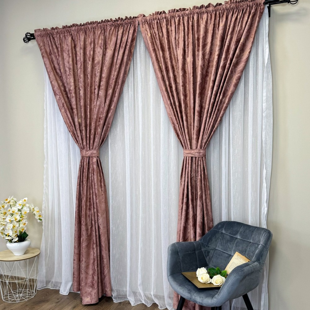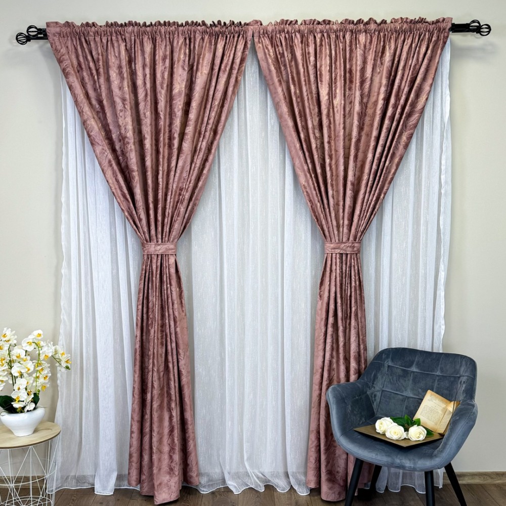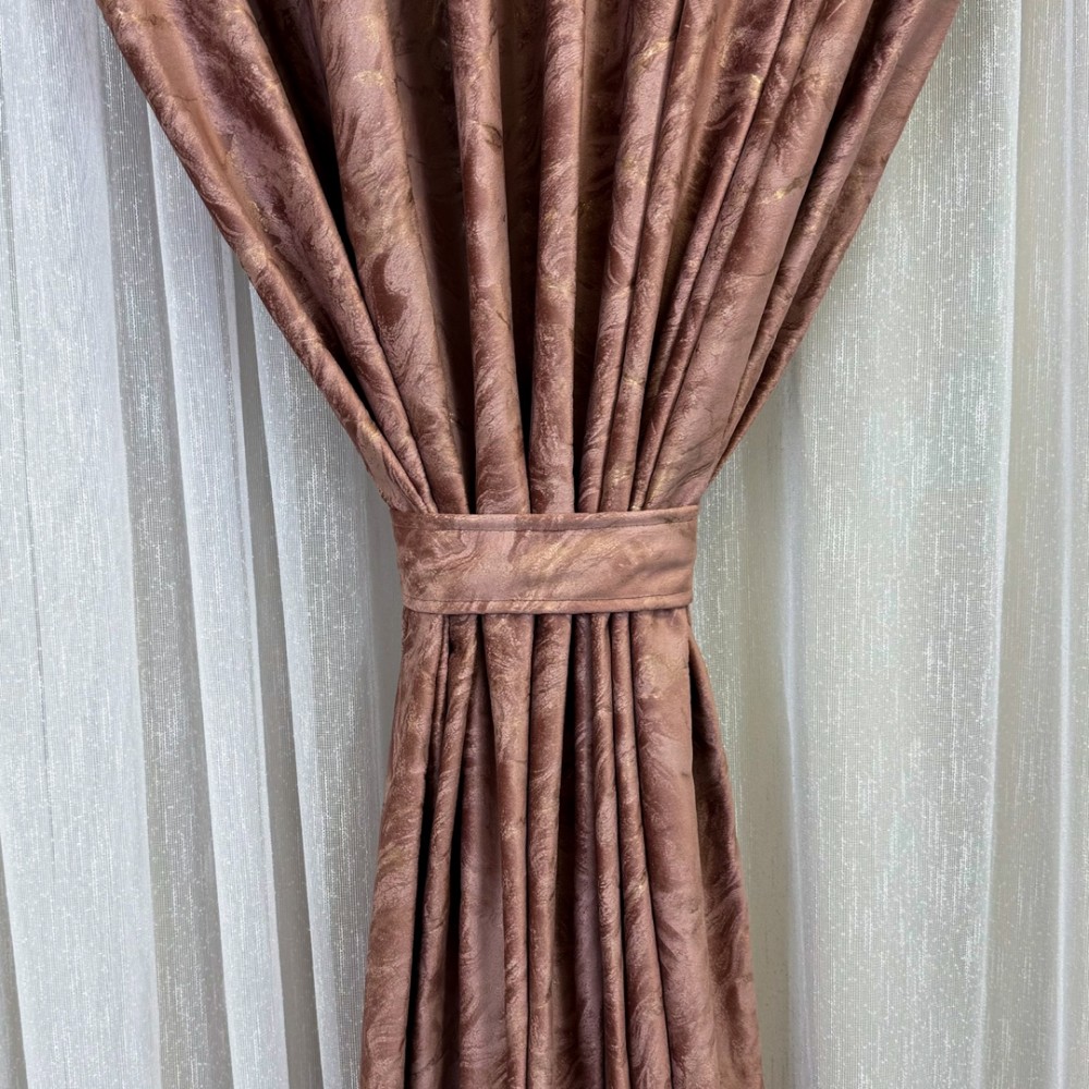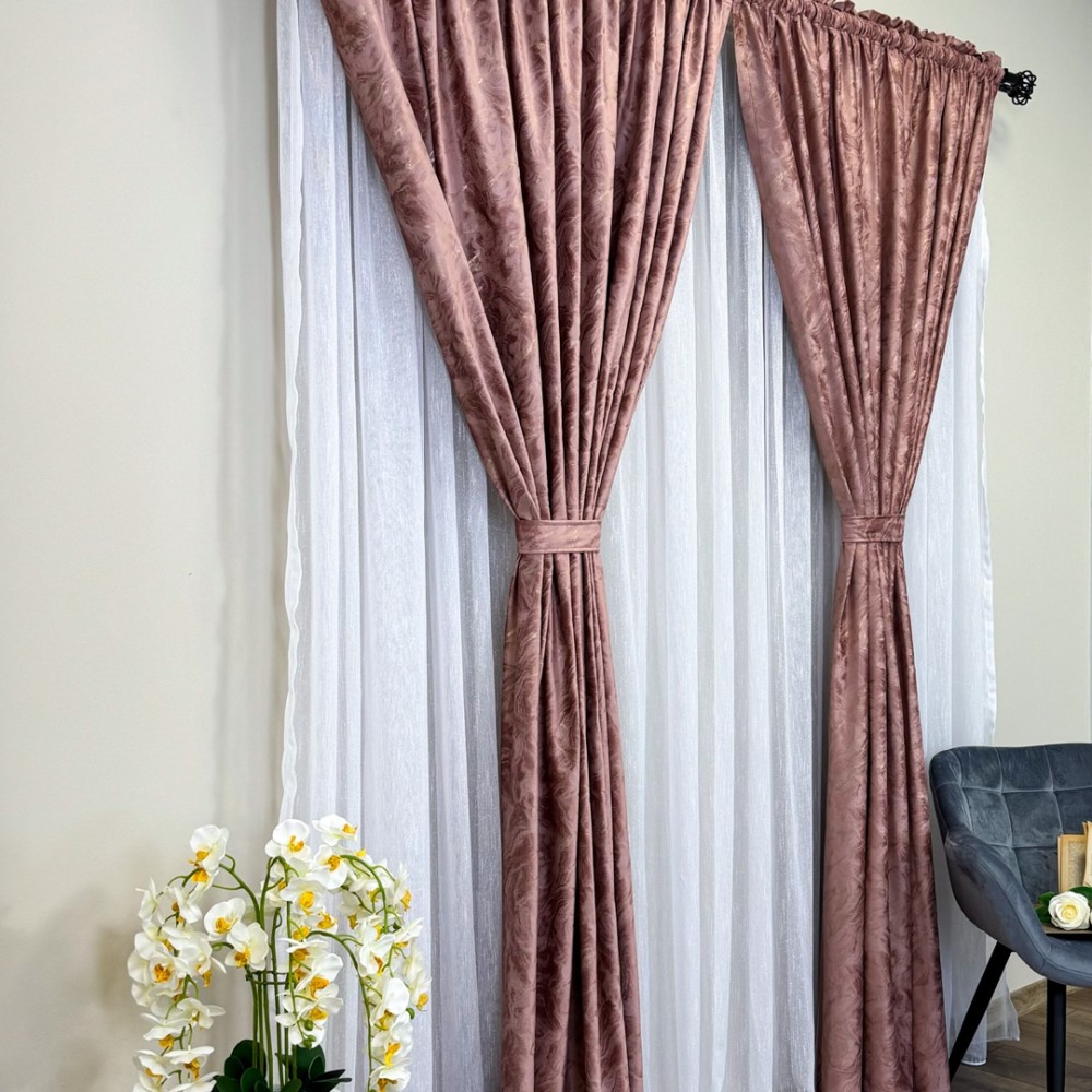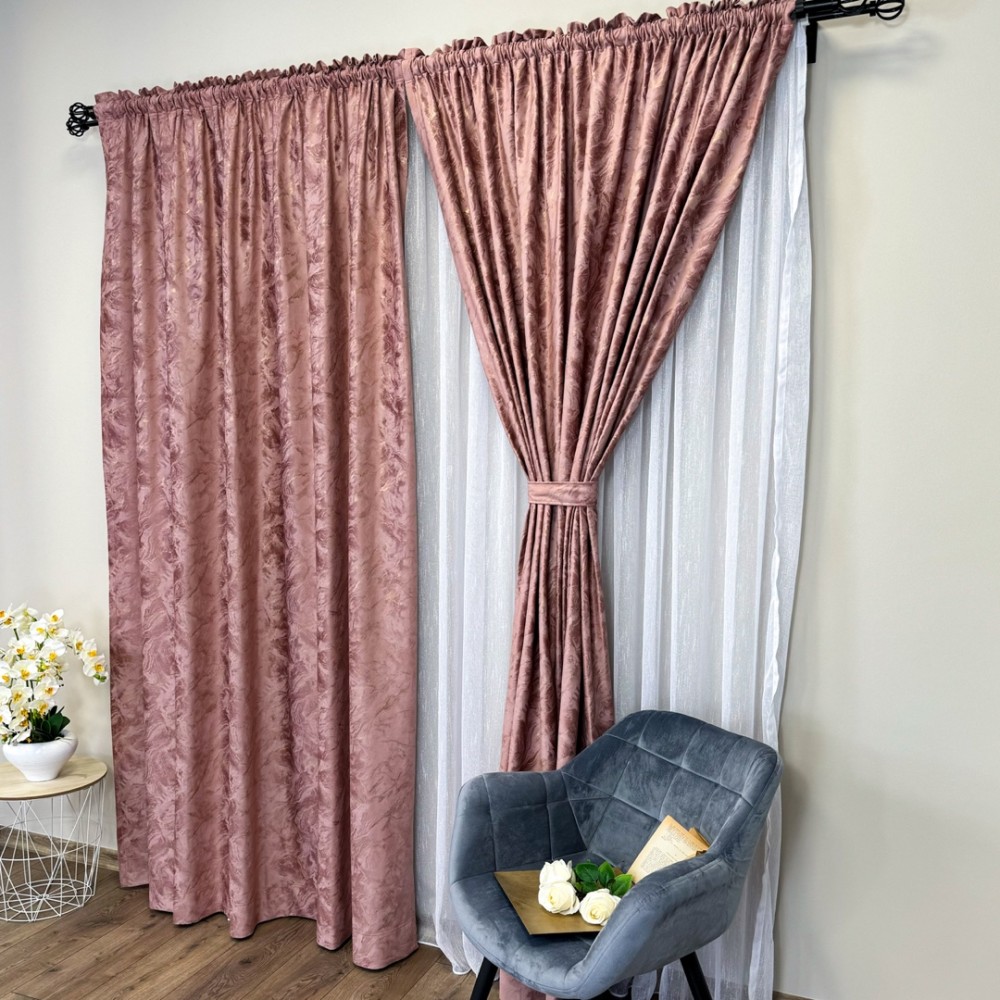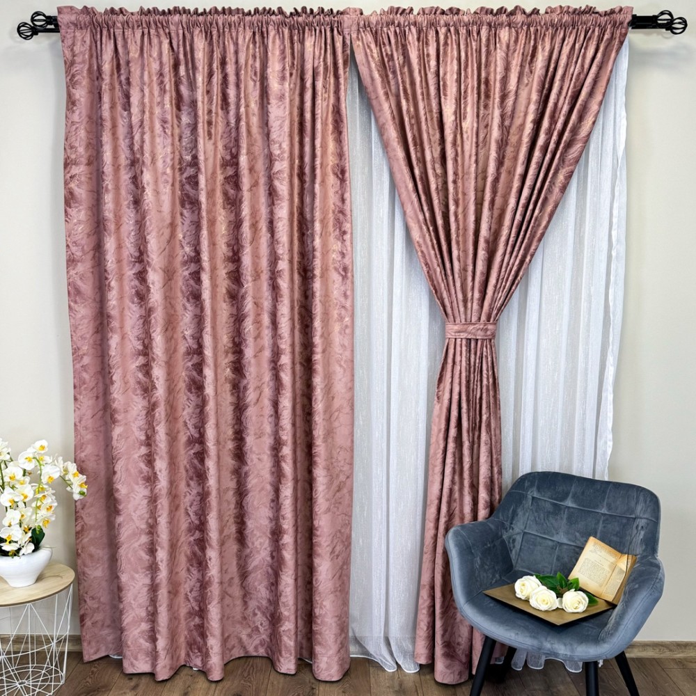 Draperie Catifea MYKONOS cu valuri rafinate aurii, 140cm latime x 260cm înălțime, cu TIV LAT, Rose, CumparaMisim, cod produs: BNM-DR50