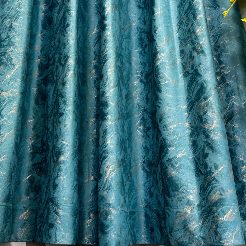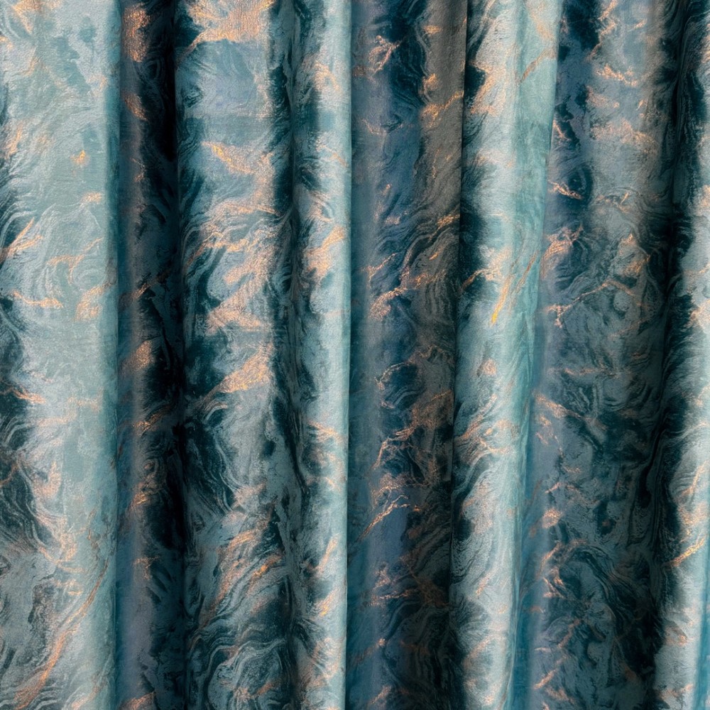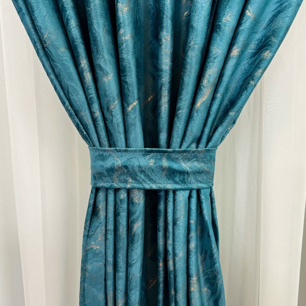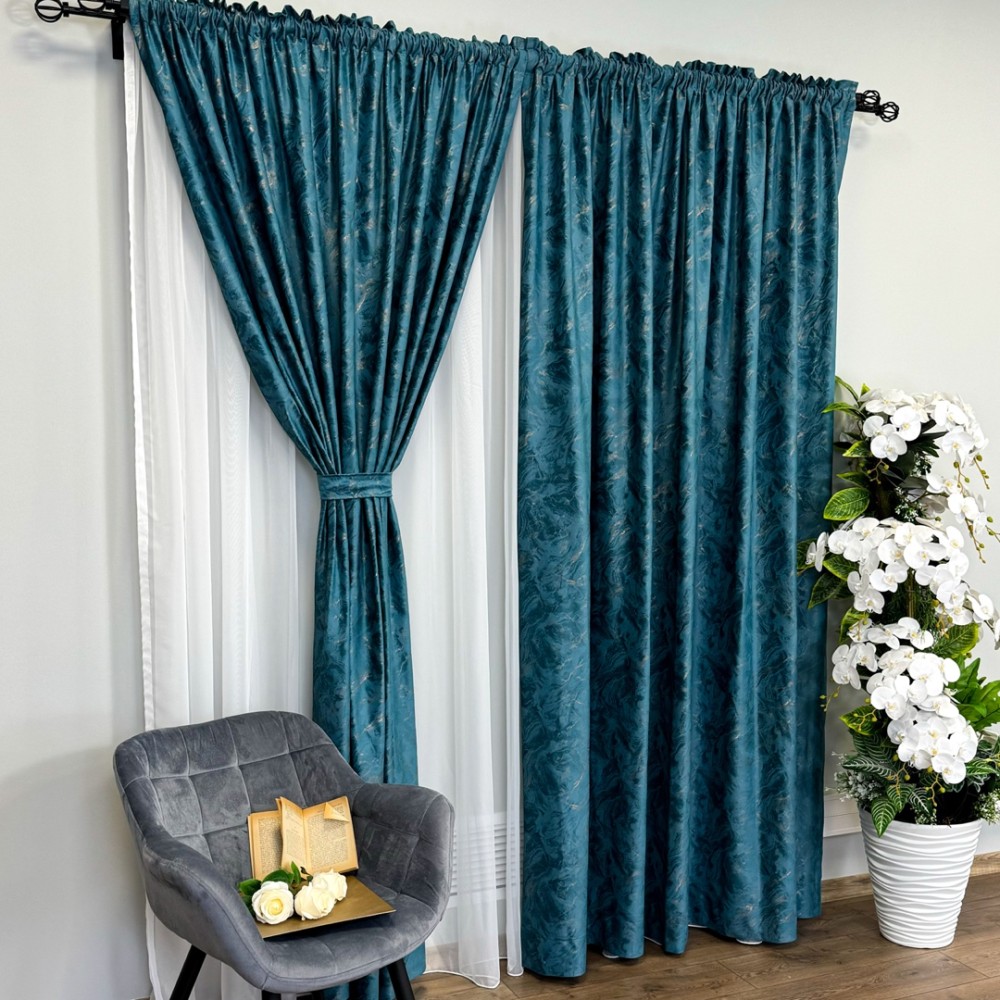Draperie Catifea MYKONOS cu valuri rafinate aurii, 140cm latime x 260cm înălțime, cu TIV LAT, Turquoise - V6, CumparaMisim, cod produs: BNM-DR56