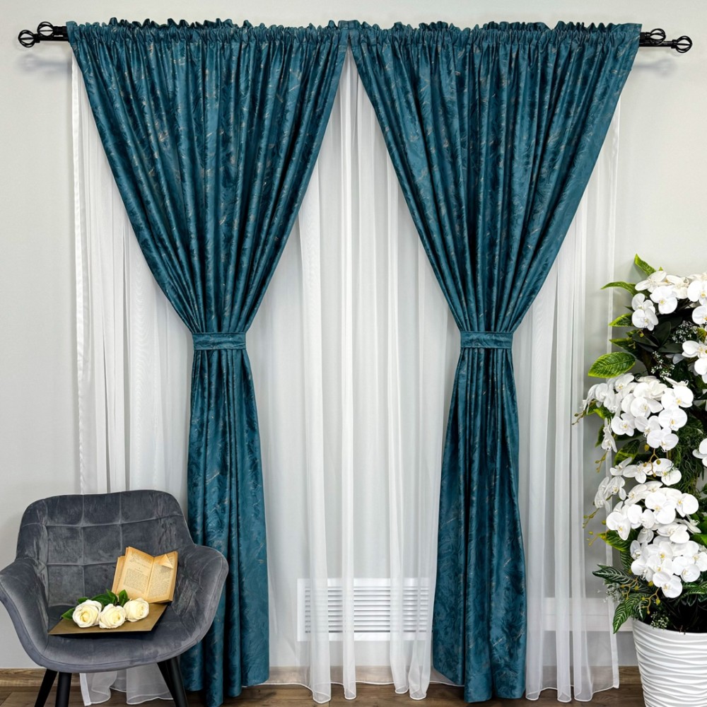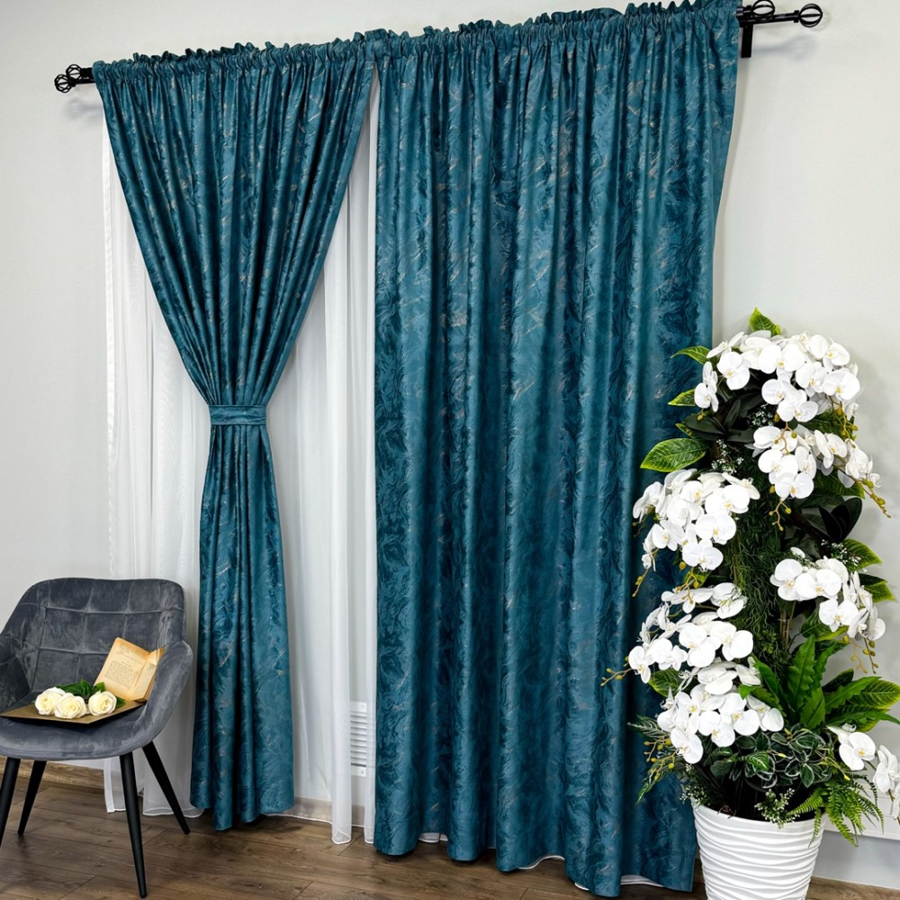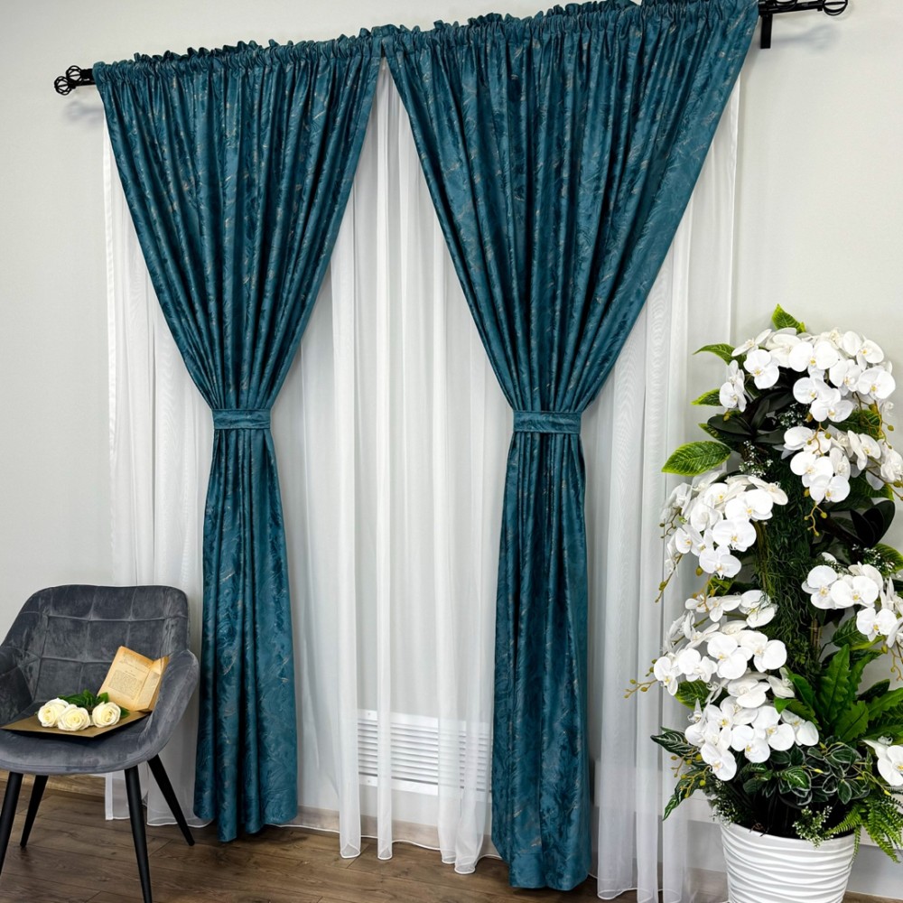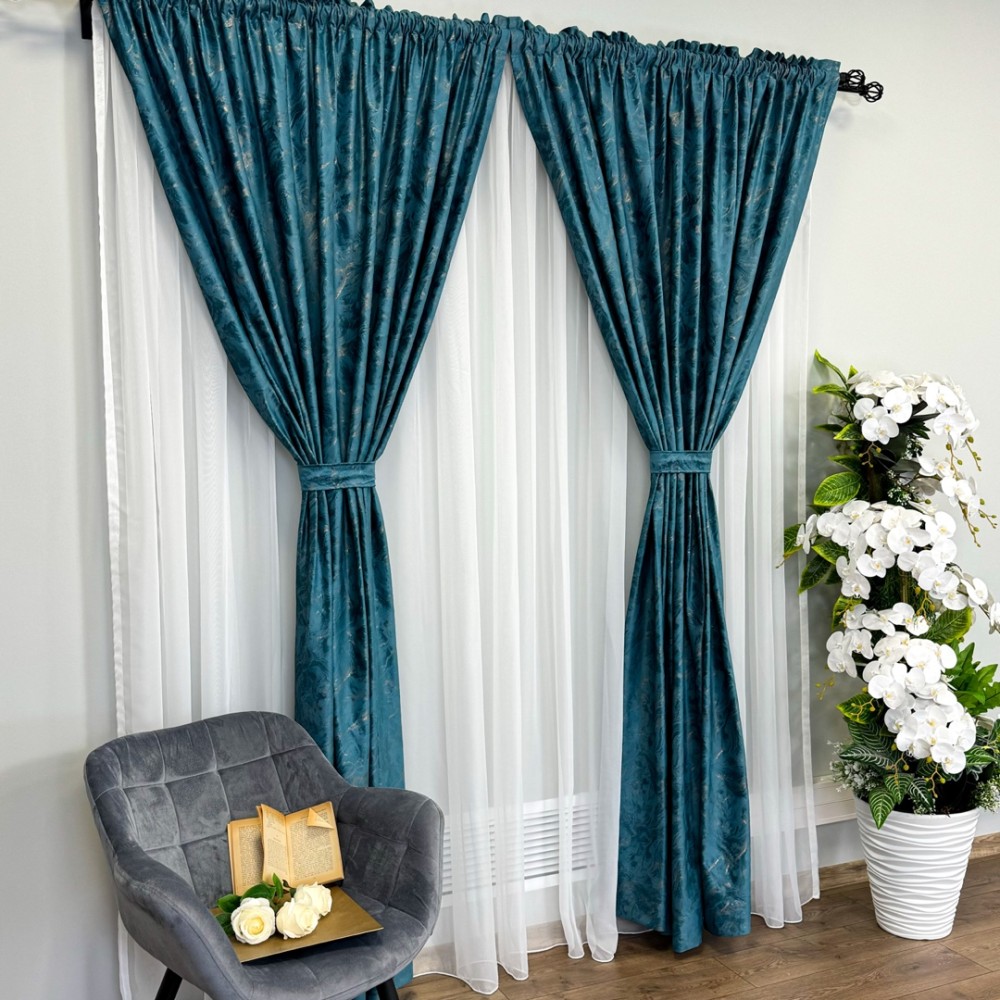 Draperie Catifea MYKONOS cu valuri rafinate aurii, 140cm latime x 260cm înălțime, cu TIV LAT, Turquoise - V6, CumparaMisim, cod produs: BNM-DR56