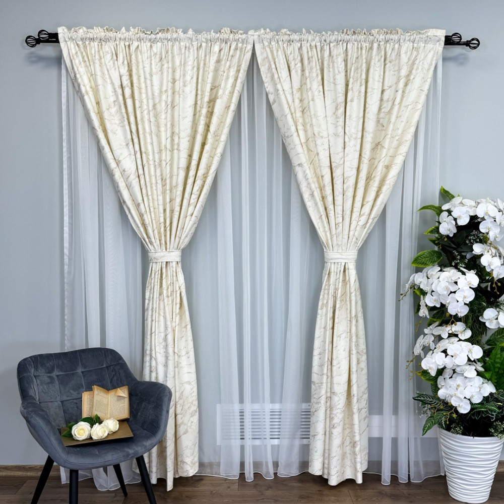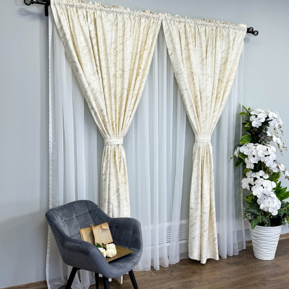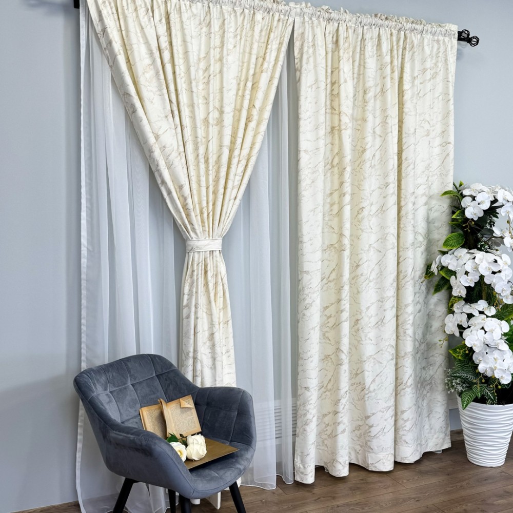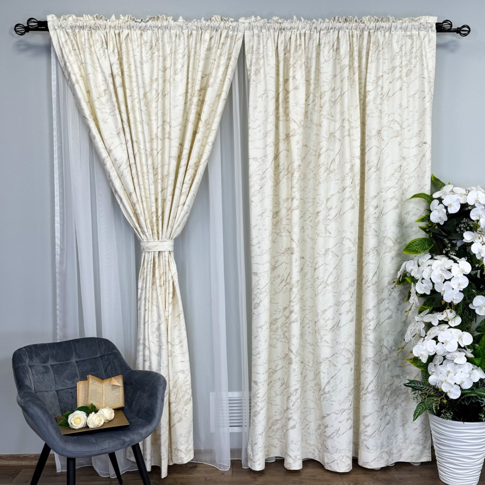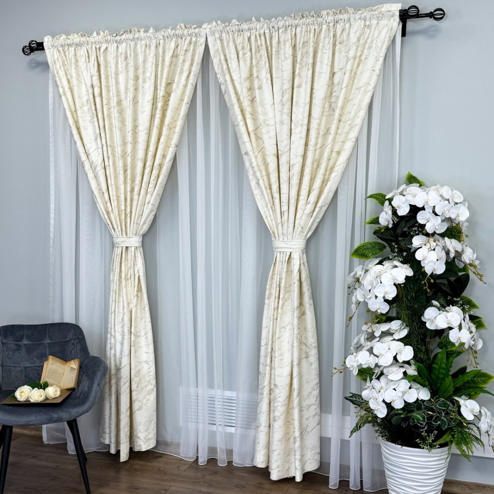 Aceste draperii nu sunt doar un element de decor, ci și o declarație a bunului gust și a stilului sofisticat al proprietarului. Cu o astfel de alegere, încăperea devine cu adevărat remarcabilă, transformând orice spațiu într-un sanctuar al luxului și al eleganței.