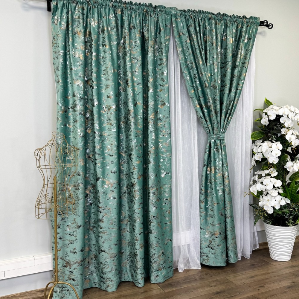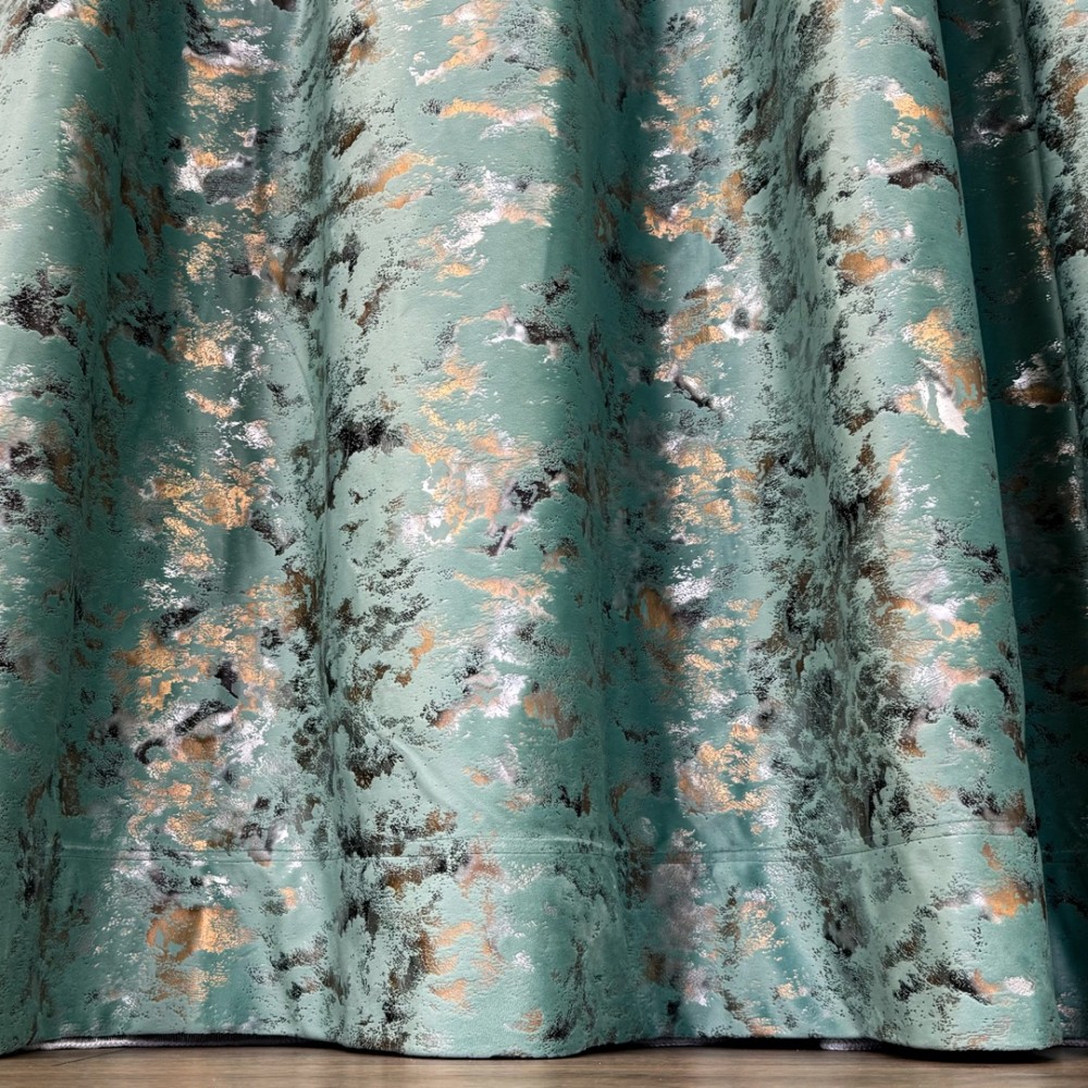 Draperia Nikko din catifea cu inserții metalizate aurii și argintii este o alegere sofisticată pentru cei care doresc să adauge un plus de rafinament și exclusivitate decorului interior. Contrastul dintre textura moale a catifelei și strălucirea subtilă a inserțiilor metalizate creează un efect vizual spectaculos, transformând orice încăpere într-un spațiu elegant și sofisticat.