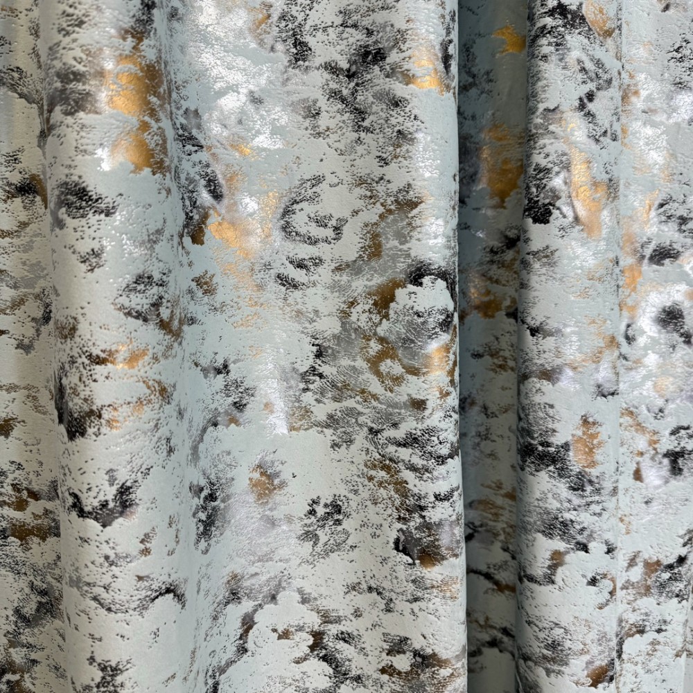Draperia Nikko din catifea cu inserții metalizate aurii și argintii este o alegere sofisticată pentru cei care doresc să adauge un plus de rafinament și exclusivitate decorului interior. Contrastul dintre textura moale a catifelei și strălucirea subtilă a inserțiilor metalizate creează un efect vizual spectaculos, transformând orice încăpere într-un spațiu elegant și sofisticat.