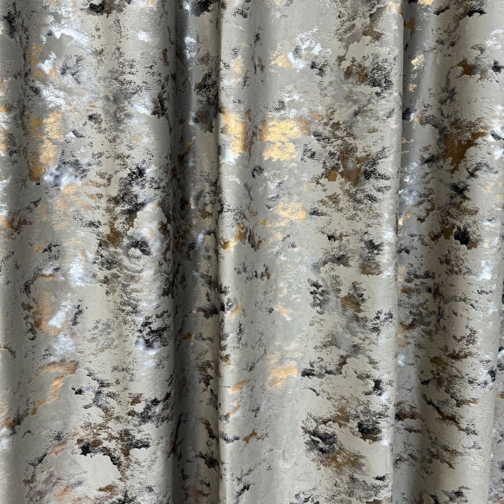 Draperia Nikko din catifea cu inserții metalizate aurii și argintii este o alegere sofisticată pentru cei care doresc să adauge un plus de rafinament și exclusivitate decorului interior. Contrastul dintre textura moale a catifelei și strălucirea subtilă a inserțiilor metalizate creează un efect vizual spectaculos, transformând orice încăpere într-un spațiu elegant și sofisticat.