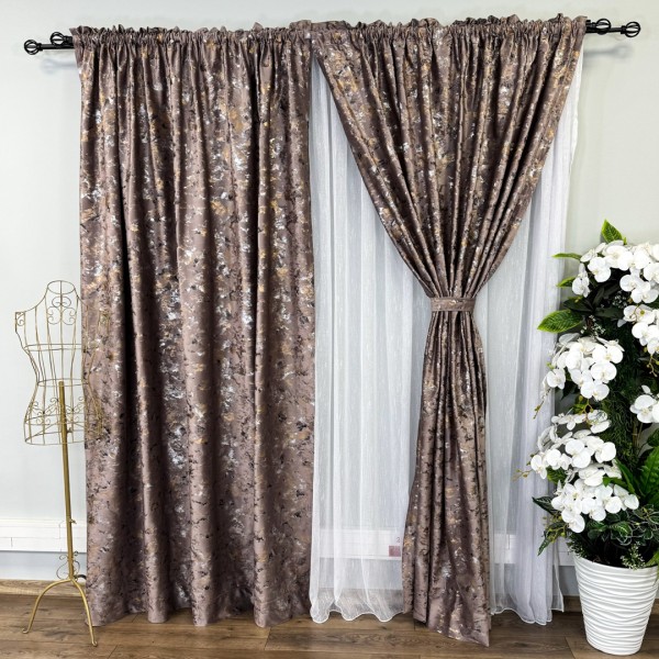 Set DraperiI Catifea Nikko cu insertii aurii, Cappuccino - V15, 2m latime x 2.5m inaltime, cu tiv lat, CumparaMisim, cod produs: CRDs8a