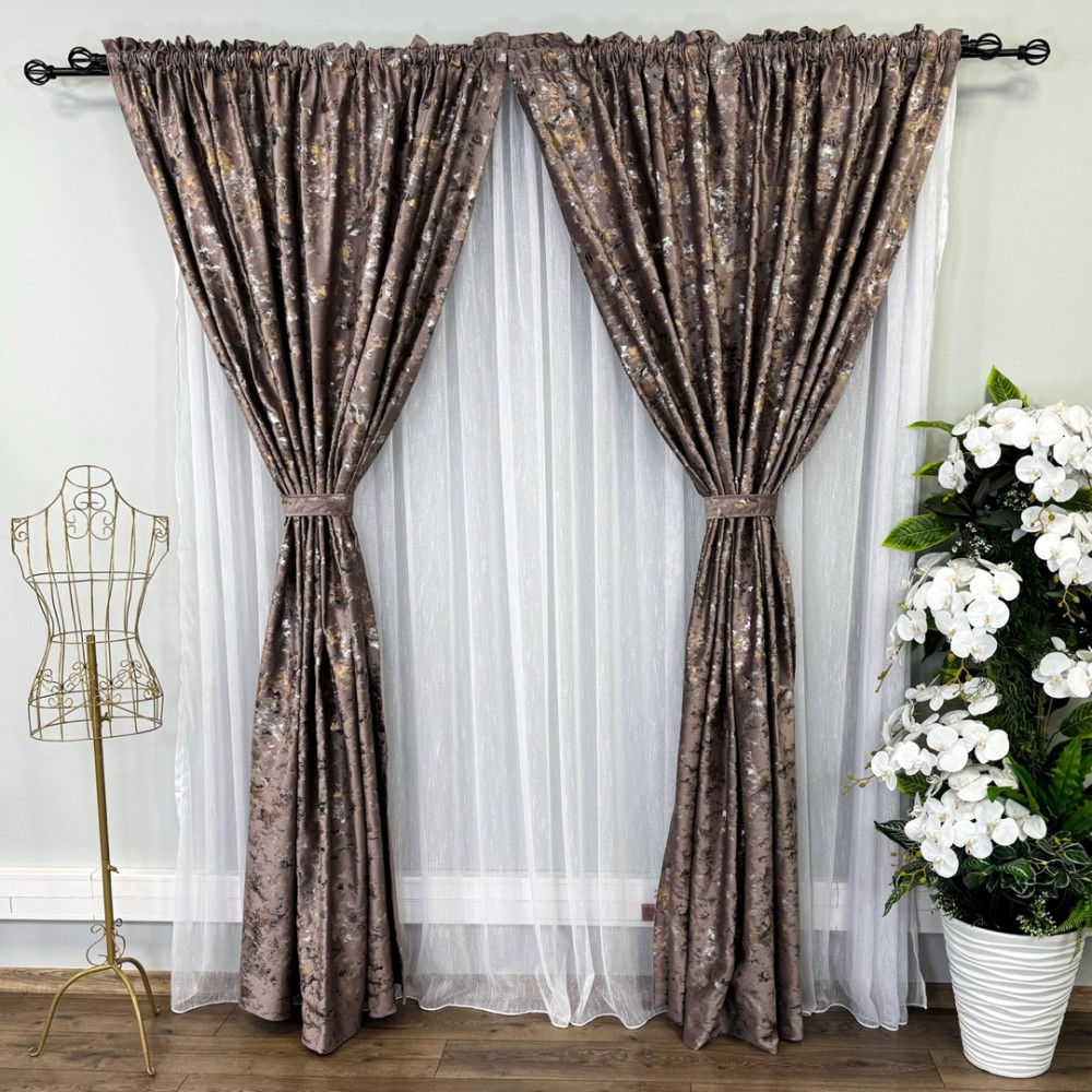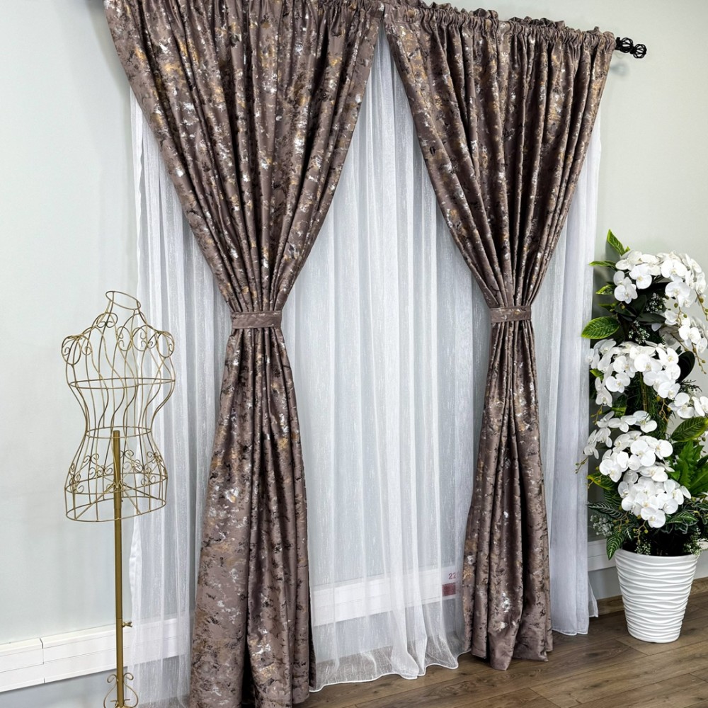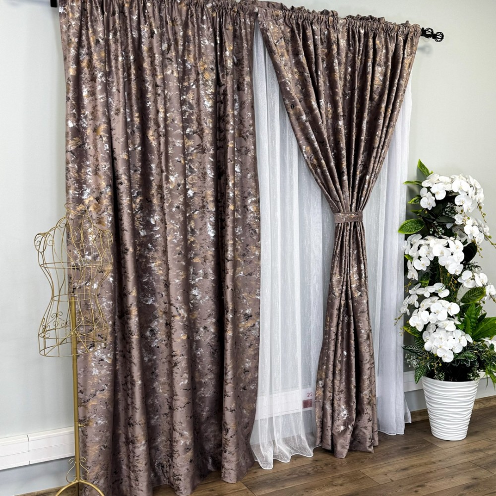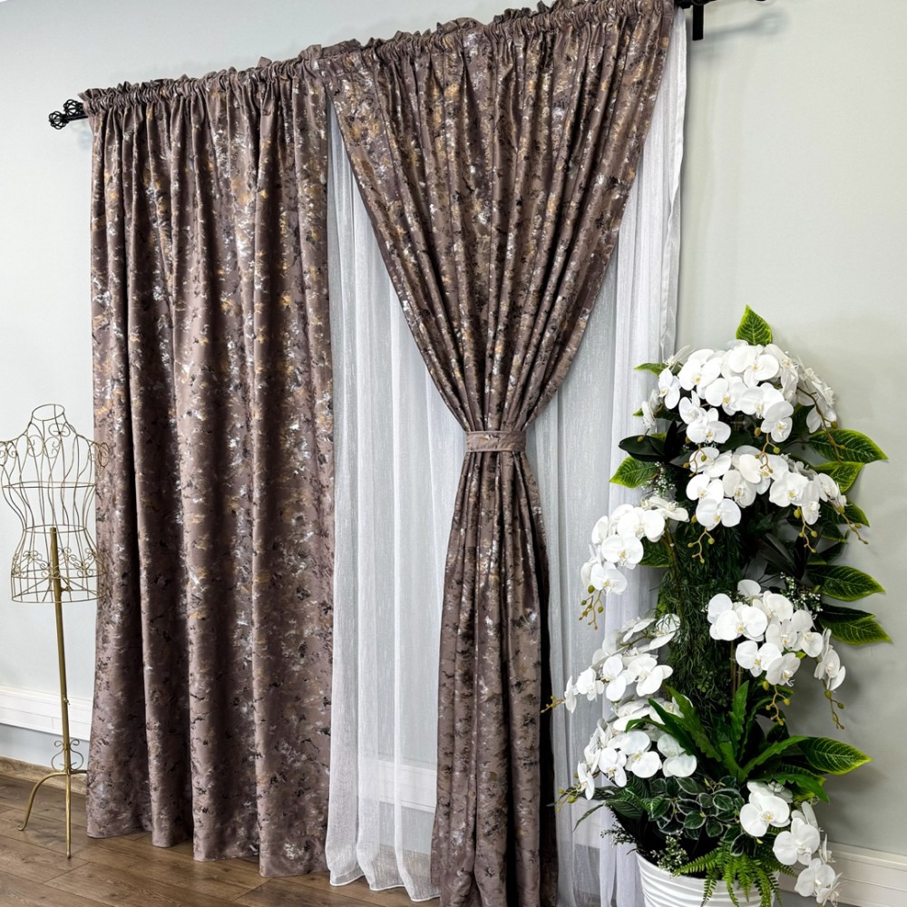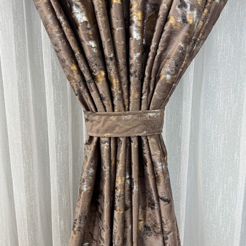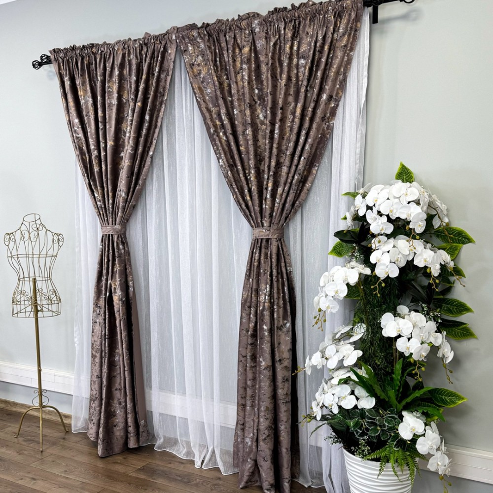 Aceste draperii nu sunt doar un element de decor, ci și o declarație a bunului gust și a stilului sofisticat al proprietarului. Cu o astfel de alegere, încăperea devine cu adevărat remarcabilă, transformând orice spațiu într-un sanctuar al luxului și al eleganței.