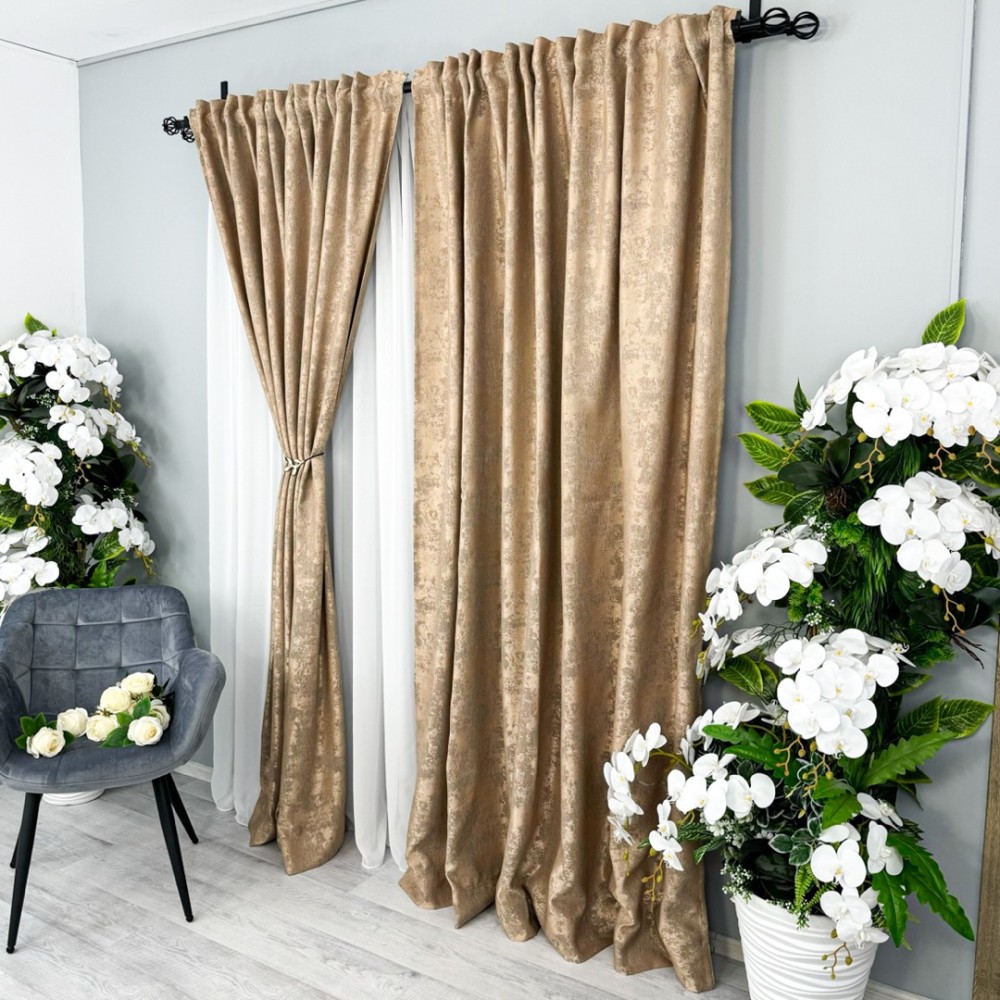 Această draperie combină estetica elegantă cu funcționalitatea, fiind o alegere ideală pentru un interior rafinat și confortabil. Sistemul de prindere de la mijlocul draperiei nu este inclus.