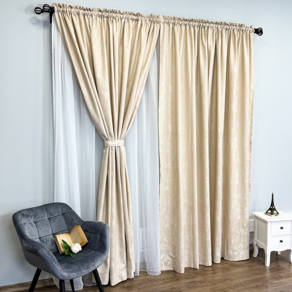 Draperie din Jacquard model Nisip, 140cm latime x 260cm înălțime, cu TIV LAT, CREM, CumparaMisim, cod produs: CRT-DR209