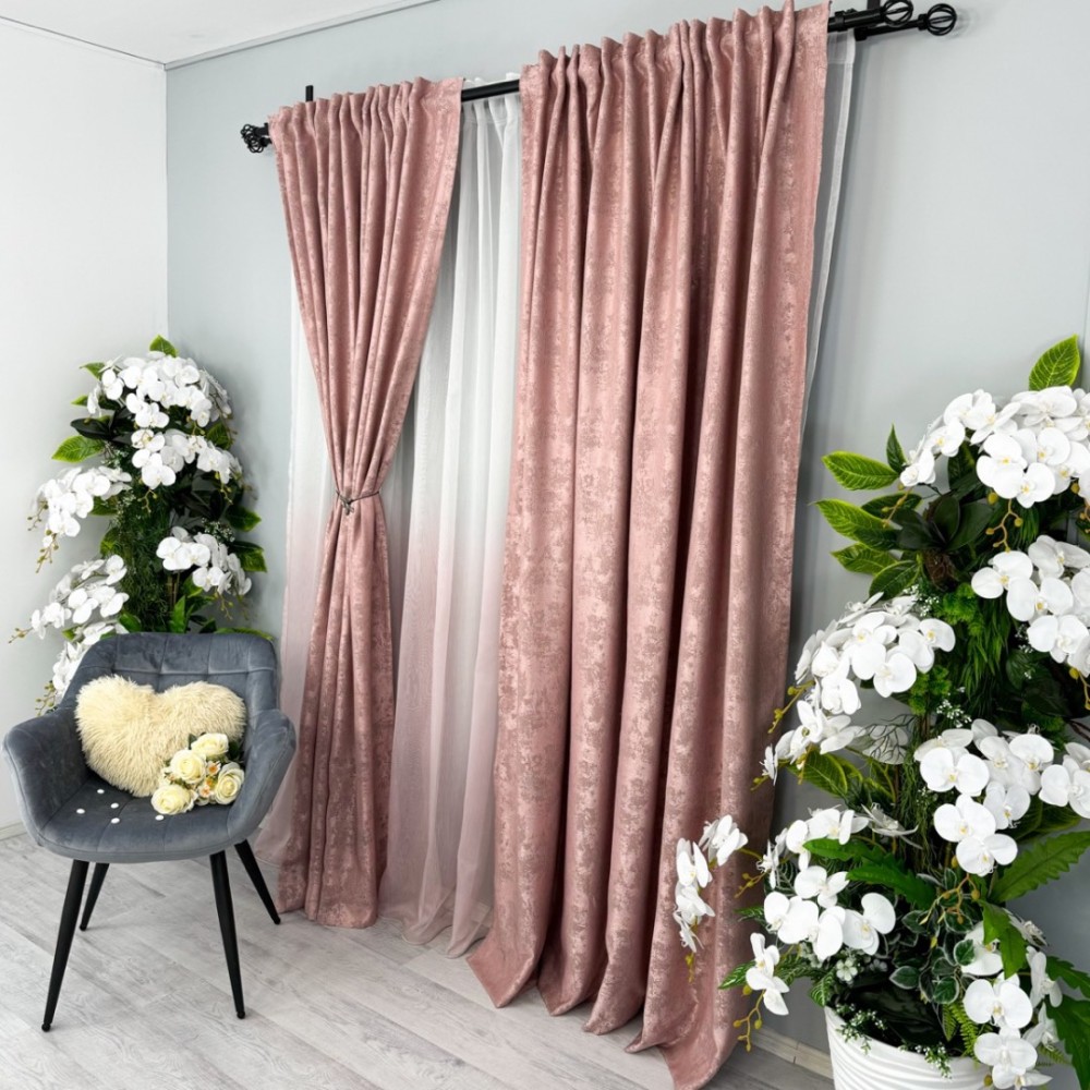 Draperie din Jacquard model Nisip, 140cm latime x 260cm înălțime, cu TIV LAT, Roz pudra, CumparaMisim, cod produs: BNM-DR201