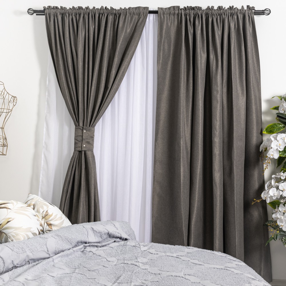 Această draperie combină estetica elegantă cu funcționalitatea, fiind o alegere ideală pentru un interior rafinat și confortabil. Sistemul de prindere de la mijlocul draperiei nu este inclus.
