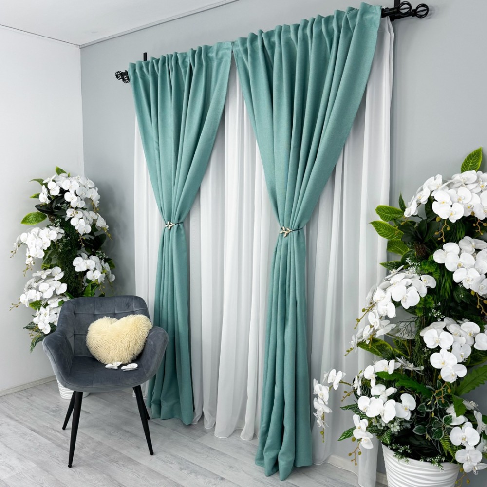 Această draperie combină estetica elegantă cu funcționalitatea, fiind o alegere ideală pentru un interior rafinat și confortabil. Sistemul de prindere de la mijlocul draperiei nu este inclus.