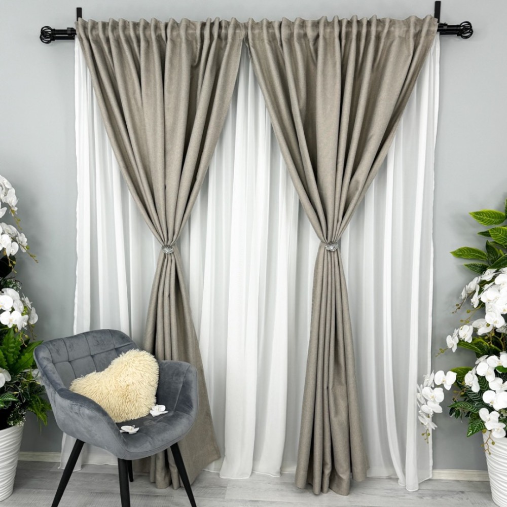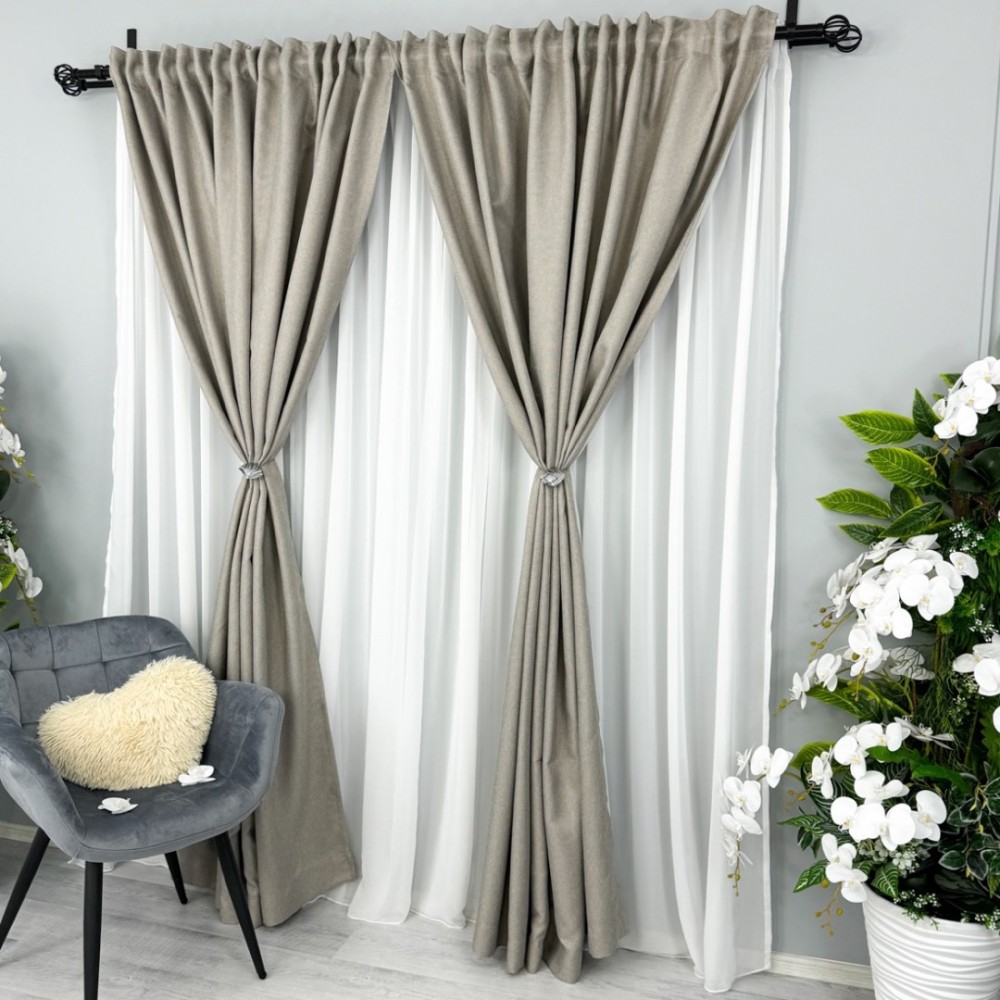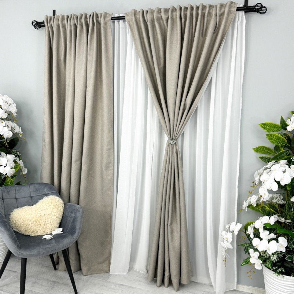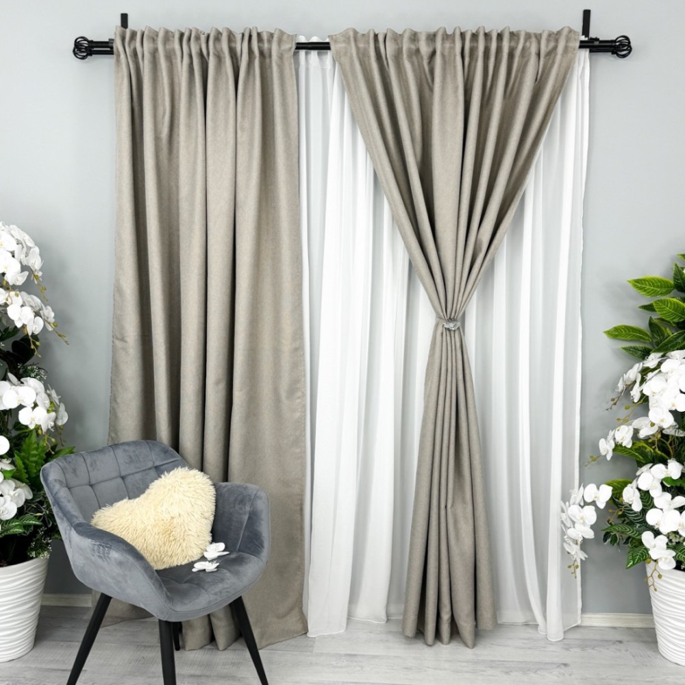 Această draperie combină estetica elegantă cu funcționalitatea, fiind o alegere ideală pentru un interior rafinat și confortabil. Sistemul de prindere de la mijlocul draperiei nu este inclus.