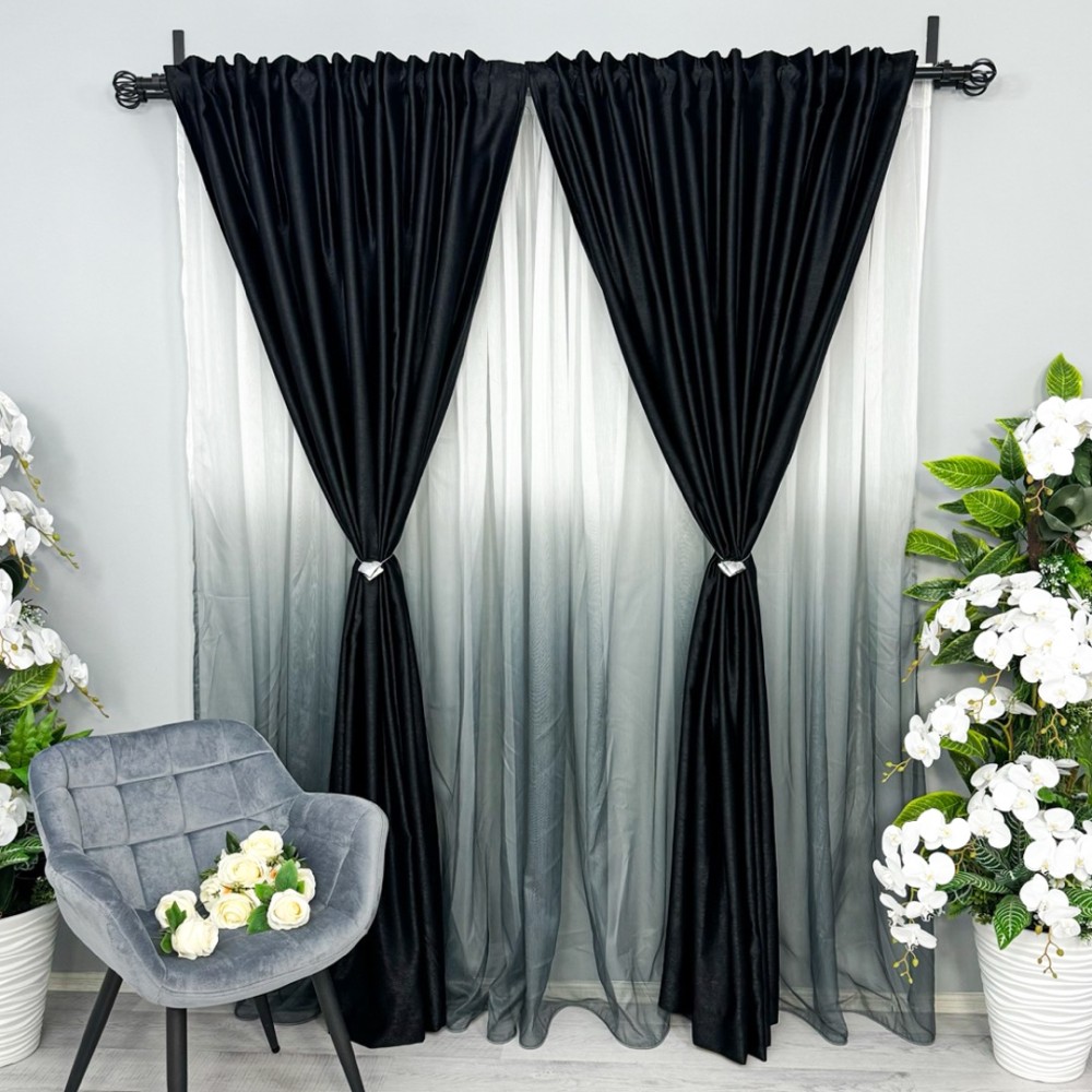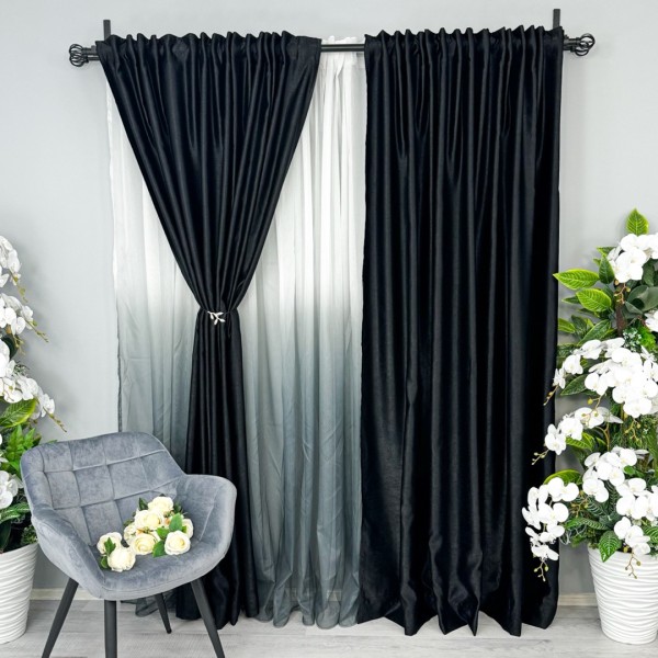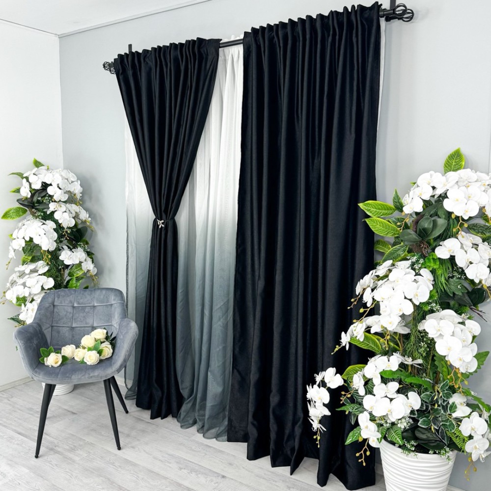 Draperie Soft Touch, Negru, 200cm latime x 232cm inactive, cu rejansa pentru bara, CumparaMisim, cod produs: CSR-DRs61A