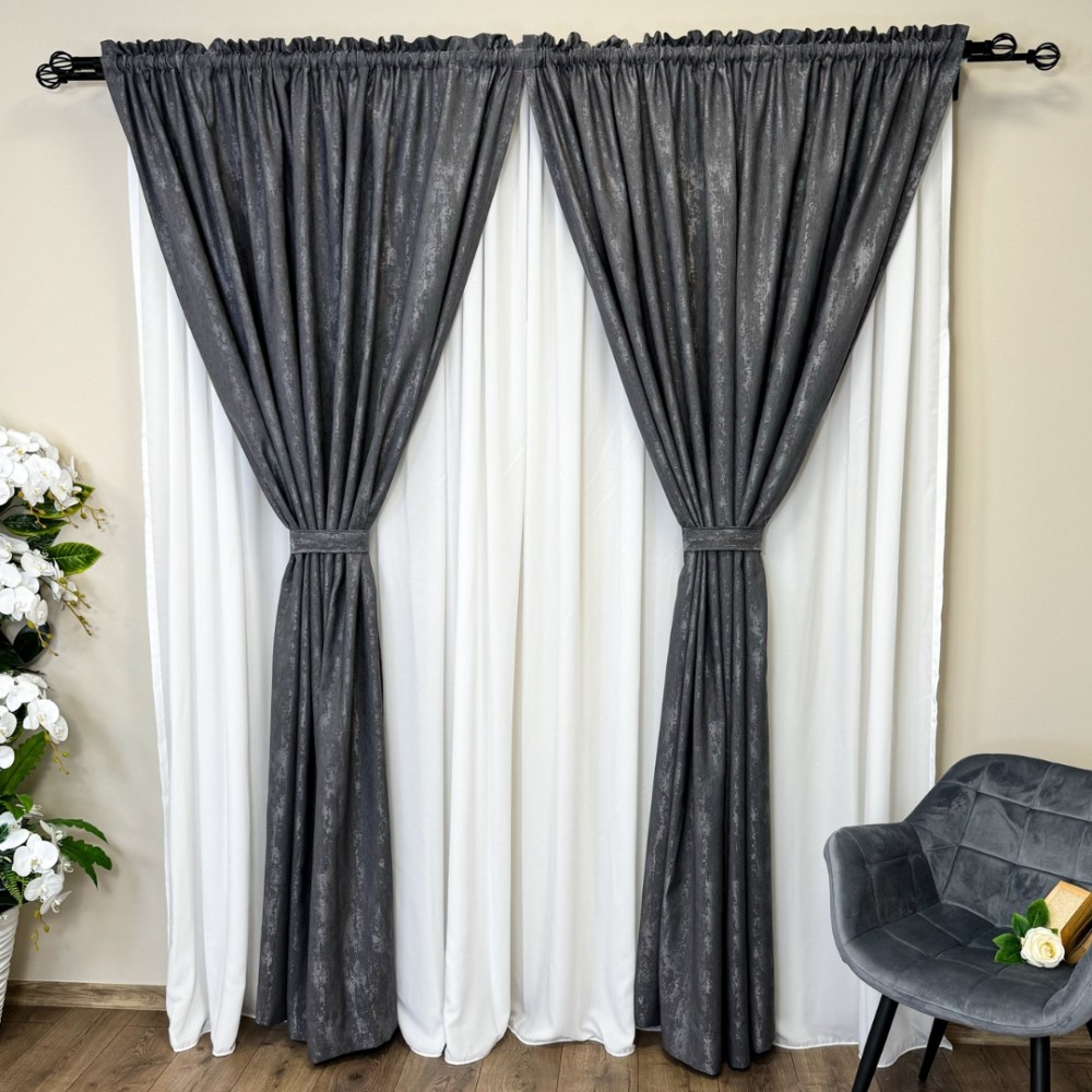 Draperie VENTI V2 din Jacquard model Nisip - 200cm x 250cm, rejansa pt. sina , GRI ANTRACIT, CumparaMisim, cod produs: CRVs-205B