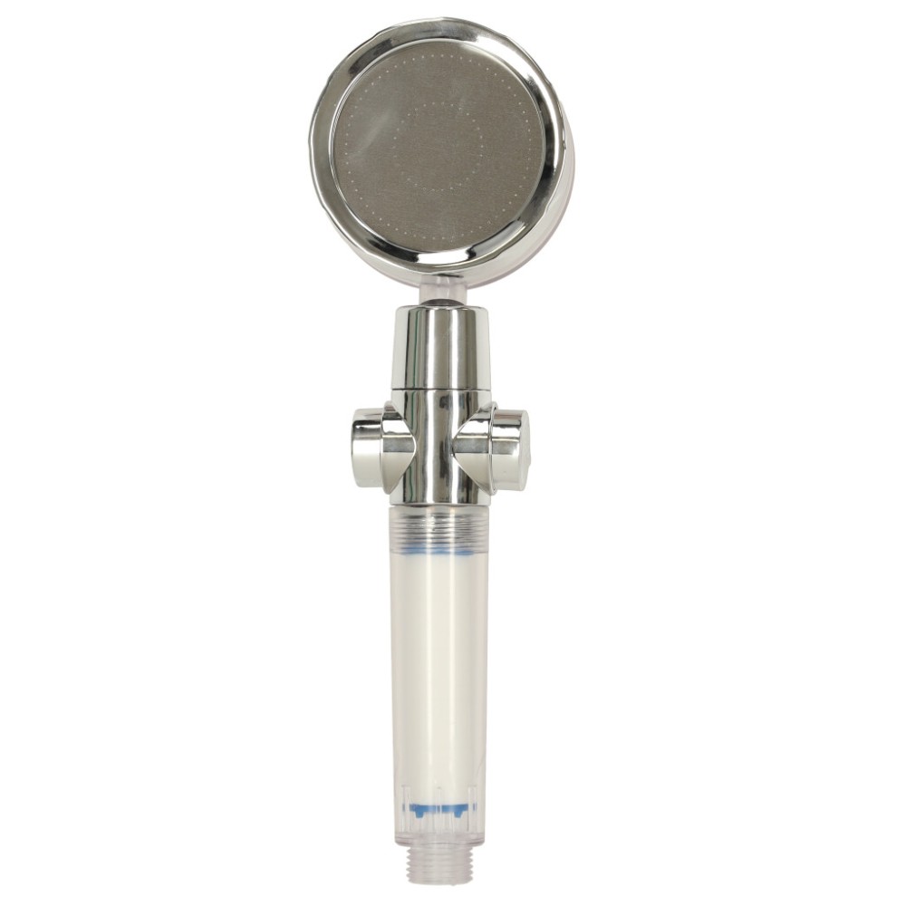 Aparatele de duș moderne au multe funcții utile - și acesta este cazul acestui aparat. Controlul de pulverizare lateral vă permite să reglați convenabil debitul de apă în funcție de nevoile dvs. sau să îl opriți fără să puneți mâna pe robinet.