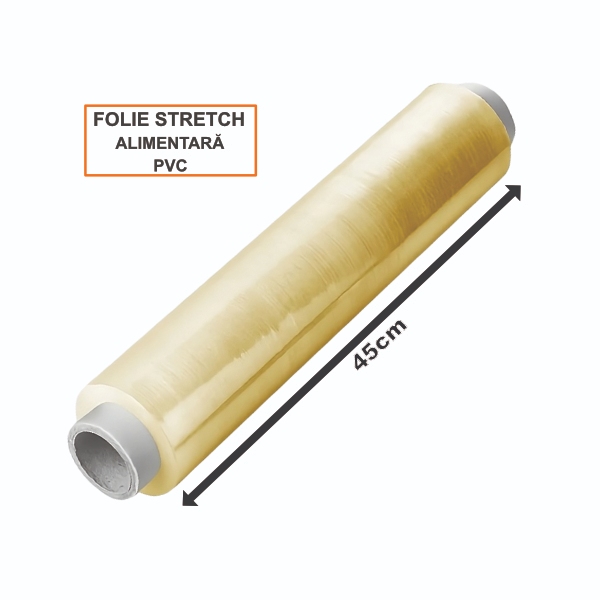 Folie Stretch Alimentară, PVC, 9 my, 45 cm, 180 m, cod produs: FSA-PVC-45