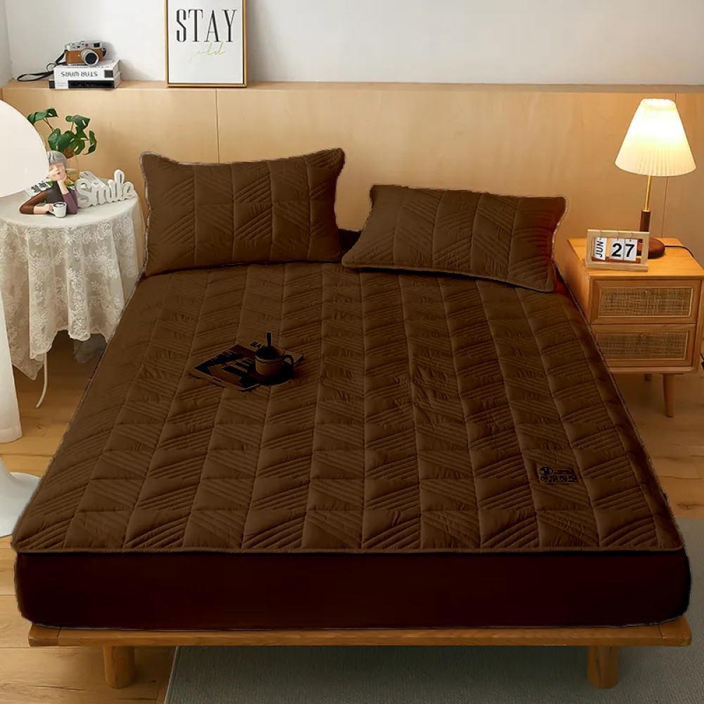 Husã matlasatã tip topper din bumbac satinat, 180x200cm + 2 fete de perna 50x70cm, Maro, Alti producatori, cod produs: SKT11