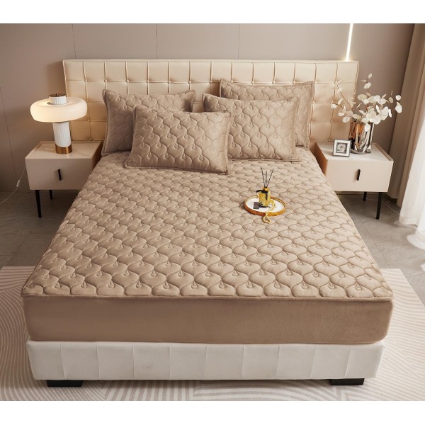 Husã matlasatã tip topper din catifea, 140x200cm + 2 fete de perna 50x70cm, cappuccino, Alti producatori, cod produs: YAT10