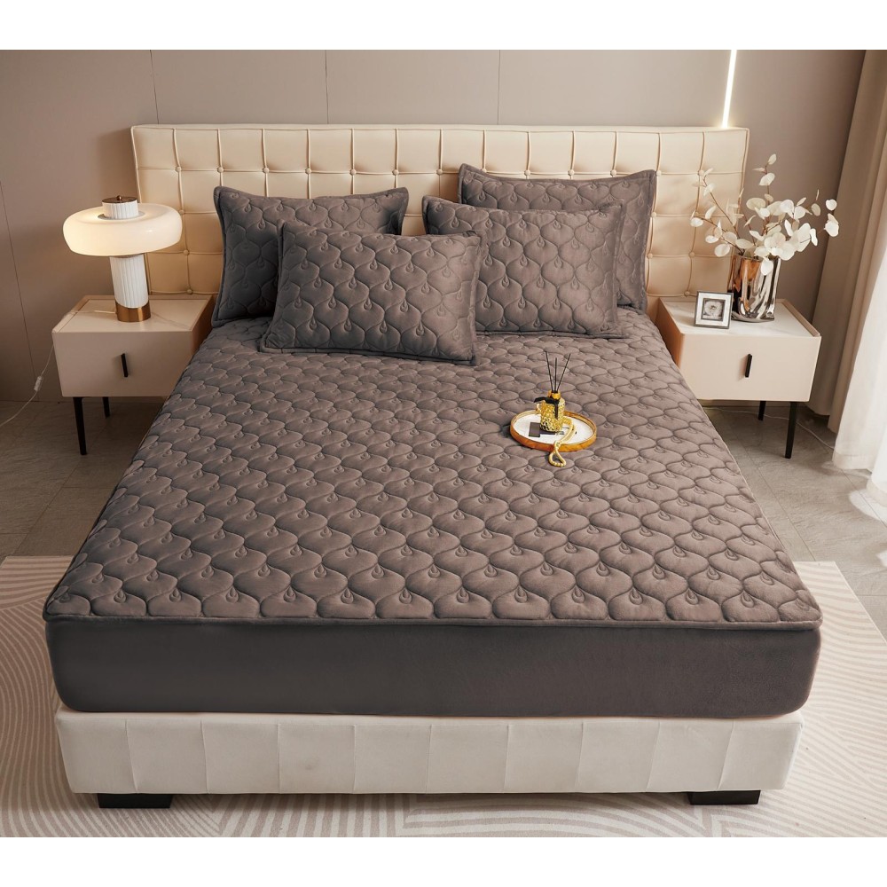 Husã matlasatã tip topper din catifea, 140x200cm + 2 fete de perna 50x70cm, maro, Alti producatori, cod produs: YAT4