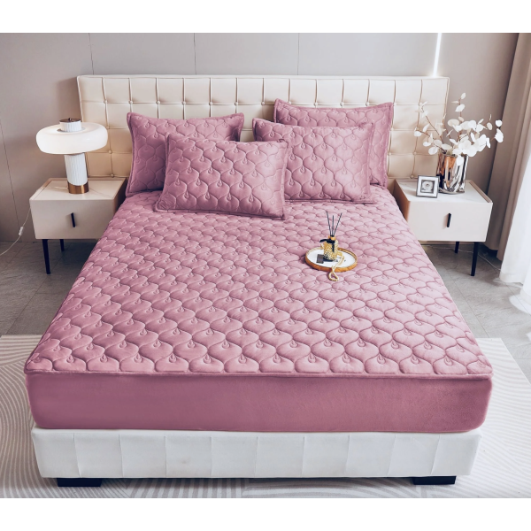 Husã matlasatã tip topper din catifea, 140x200cm + 2 fete de perna 50x70cm, roz pudra, Alti producatori, cod produs: YAT9