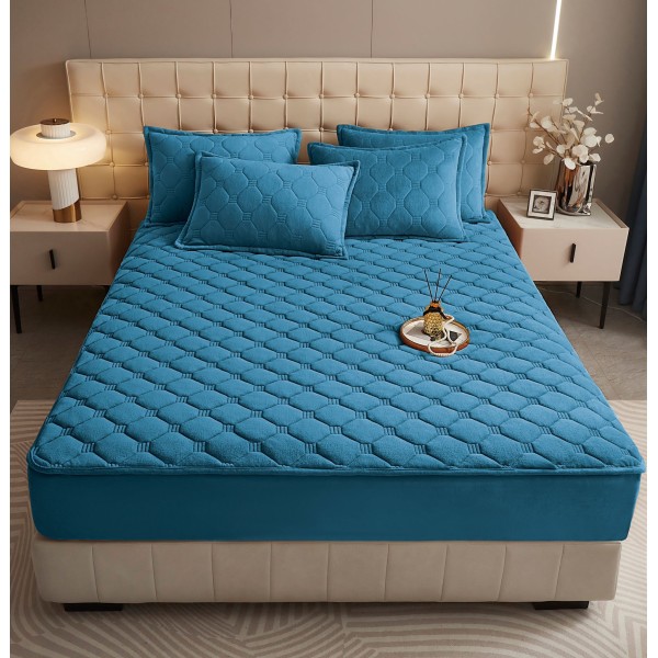 Husã matlasatã tip topper din catifea, 160x200cm + 2 fete de perna 50x70cm, albastru, Alti producatori, cod produs: YAT109