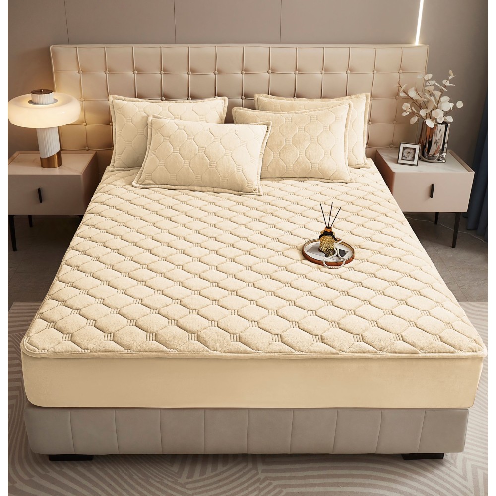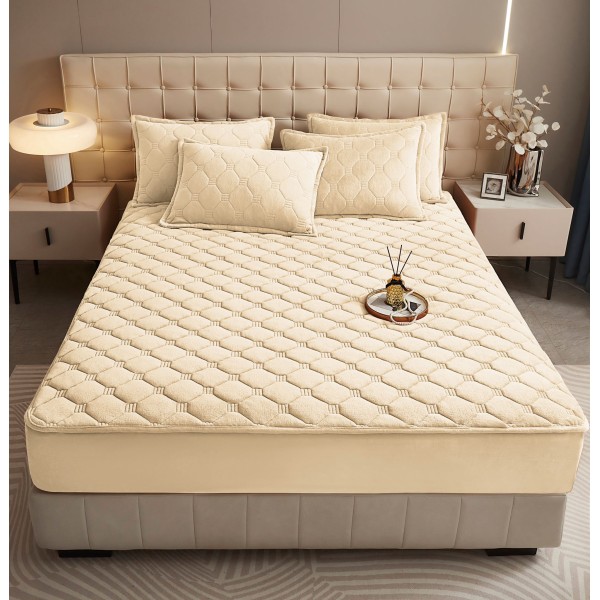 Husã matlasatã tip topper din catifea, 160x200cm + 2 fete de perna 50x70cm, crem, Alti producatori, cod produs: YAT105