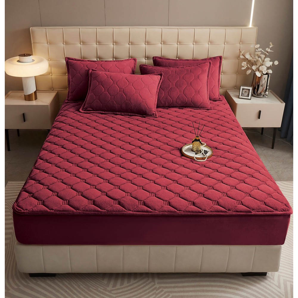 Husã matlasatã tip topper din catifea, 160x200cm + 2 fete de perna 50x70cm, grena, Alti producatori, cod produs: YAT107