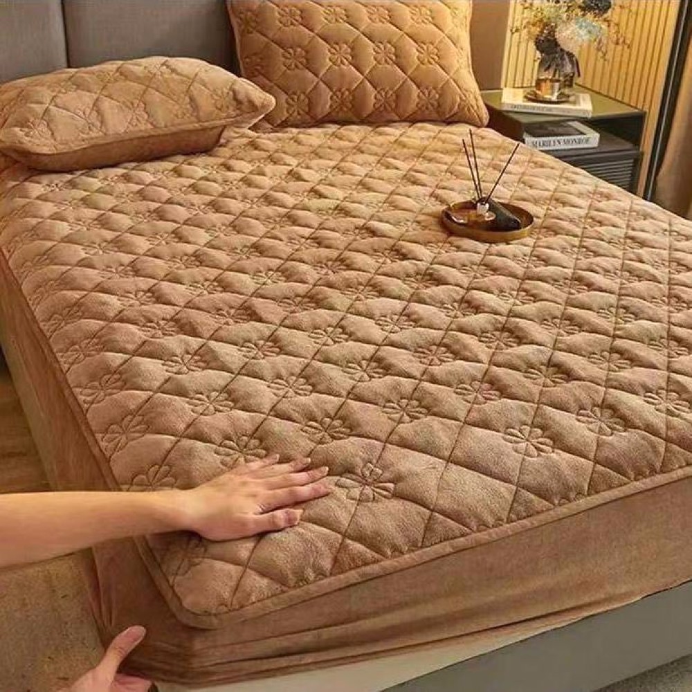 Husã matlasatã tip topper din catifea, 160x200cm + 2 fete de perna 50x70cm, maro deschis, Alti producatori, cod produs: YAT161
