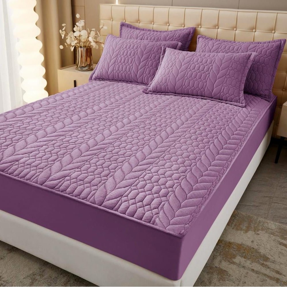 Husã matlasatã tip topper din catifea, 160x200cm + 2 fete de perna 50x70cm, mov, Alti producatori, cod produs: YAT181
