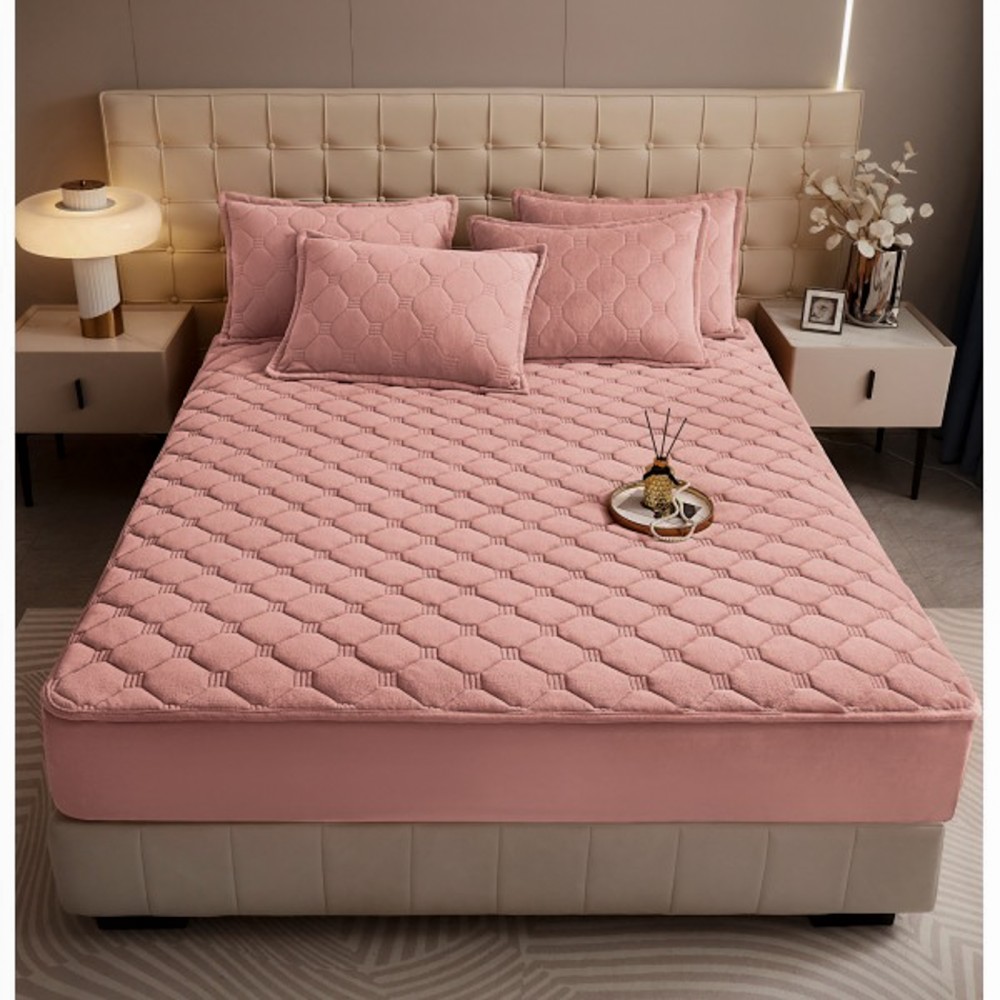 Husã matlasatã tip topper din catifea, 160x200cm + 2 fete de perna 50x70cm, roz, Alti producatori, cod produs: YAT100