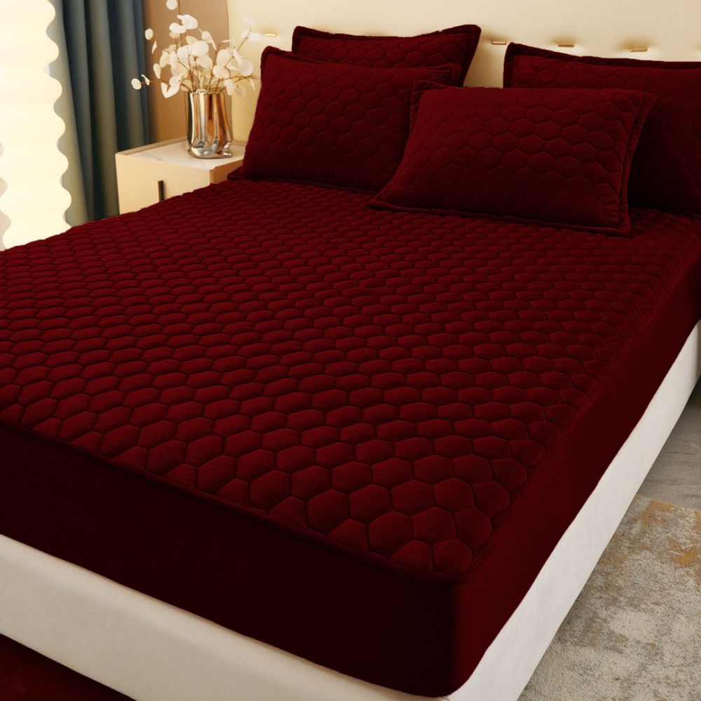 Husã matlasatã tip topper din catifea, 160x200cm + 2 fete de perna 50x70cm, grena, Alti producatori, cod produs: YAT118