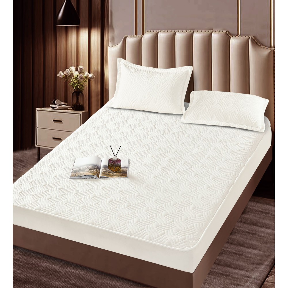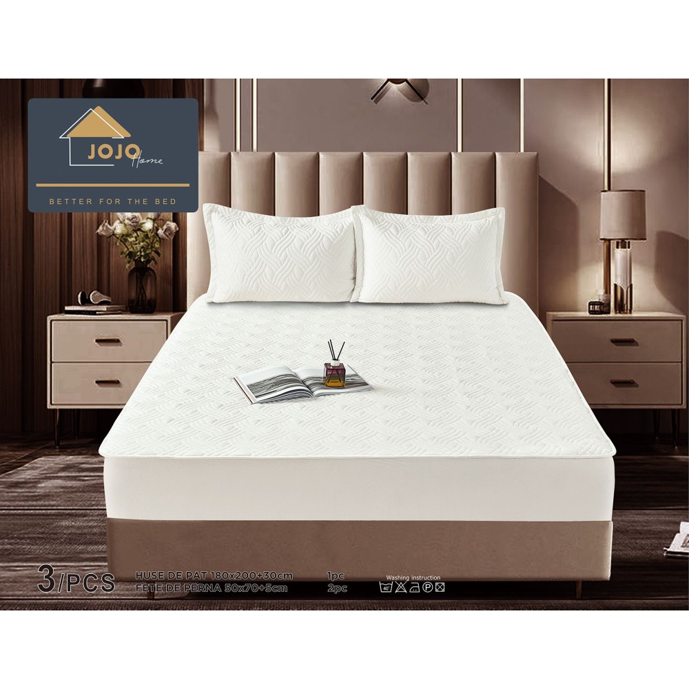 Husã matlasatã tip topper din catifea, 180x200cm + 2 fete de perna 50x70cm, alb, JOJO Home, cod produs: JOT2