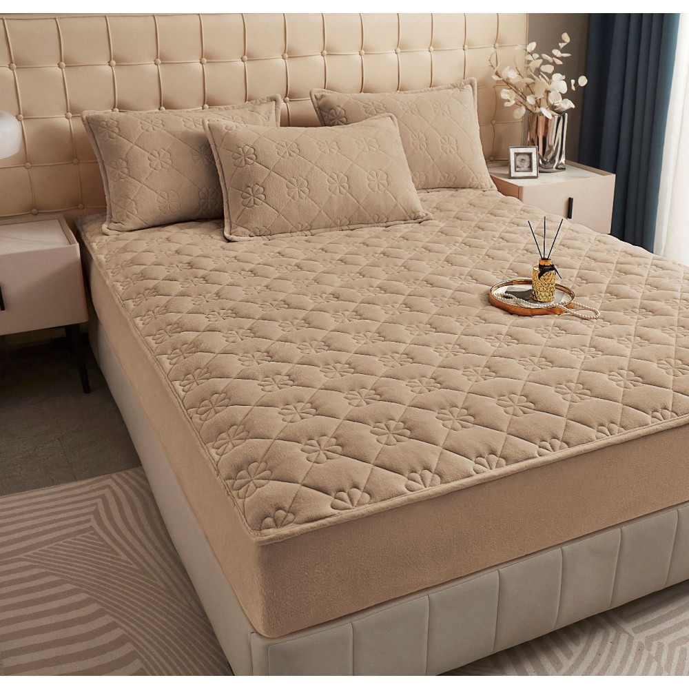 Husã matlasatã tip topper din catifea, 180x200cm + 2 fete de perna 50x70cm, cappuccino, Alti producatori, cod produs: YAT201