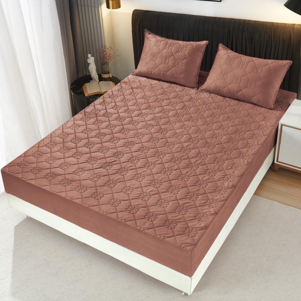 Husã matlasatã tip topper din catifea, 180x200cm + 2 fete de perna 50x70cm, Maro deschis, Alti producatori, cod produs: SKT108
