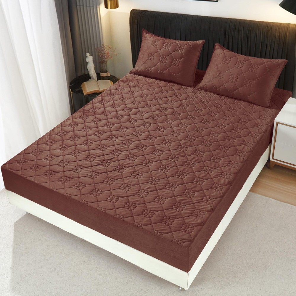 Husã matlasatã tip topper din catifea, 180x200cm + 2 fete de perna 50x70cm, Maro inchis, Alti producatori, cod produs: SKT109