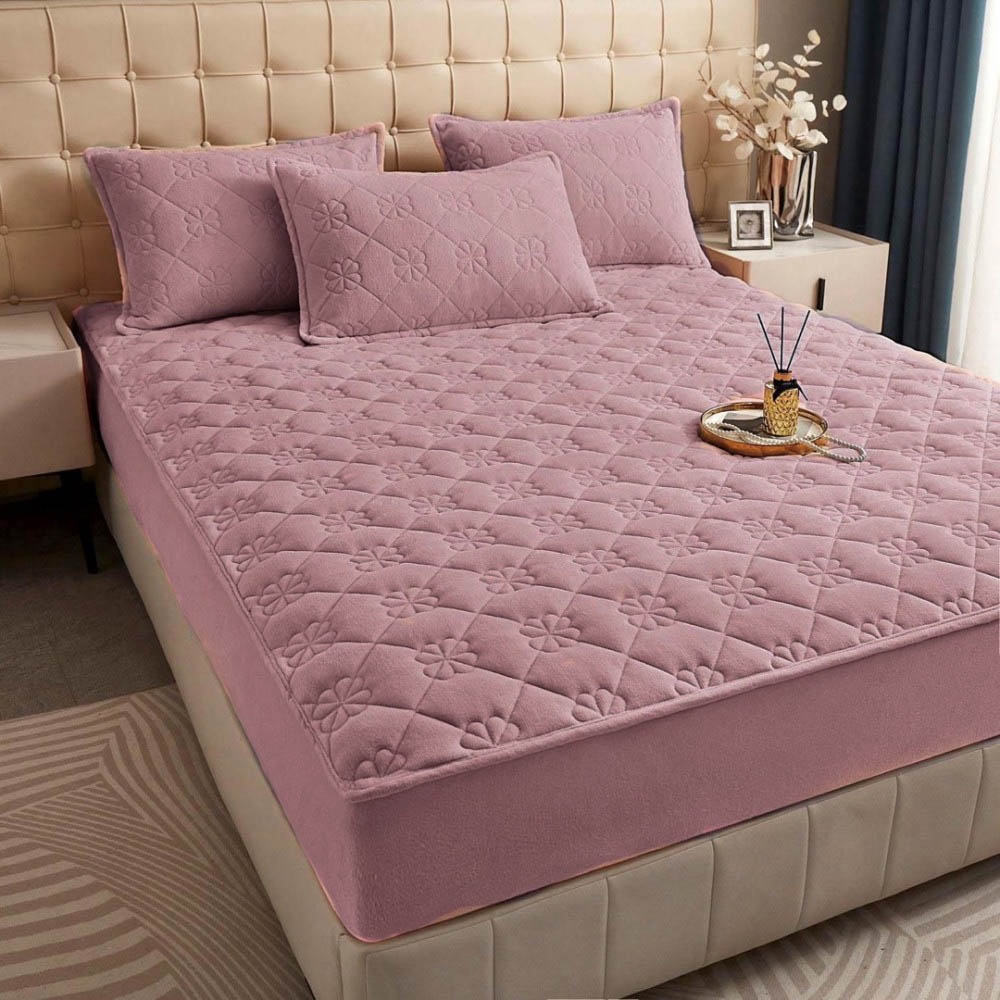 Husã matlasatã tip topper din catifea, 180x200cm + 2 fete de perna 50x70cm, roz pudra, Alti producatori, cod produs: YAT215
