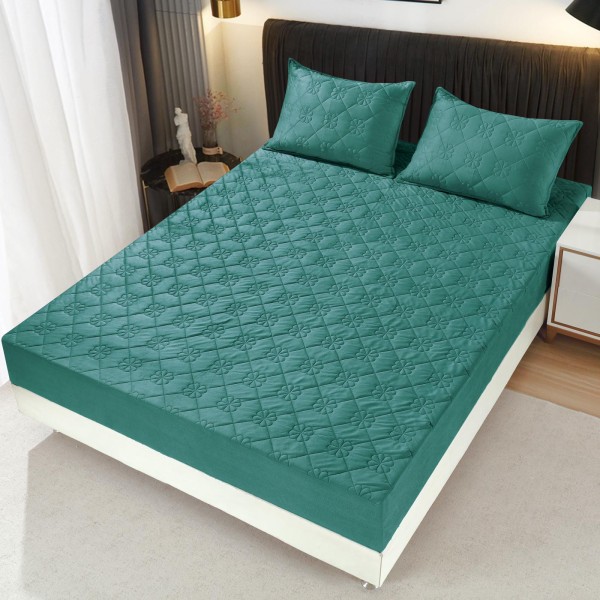 Husã matlasatã tip topper din catifea, 180x200cm + 2 fete de perna 50x70cm, Verde, Alti producatori, cod produs: SKT111