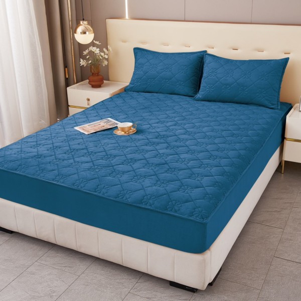 Husă Matlasată Tip Topper din Catifea 180x200cm, cu 2 Fețe de Pernă 50x70cm - Somn Odihnitor și Susținere pentru Spate, Albastru, Veluxio Home, cod produs: ELN-TP180-04
