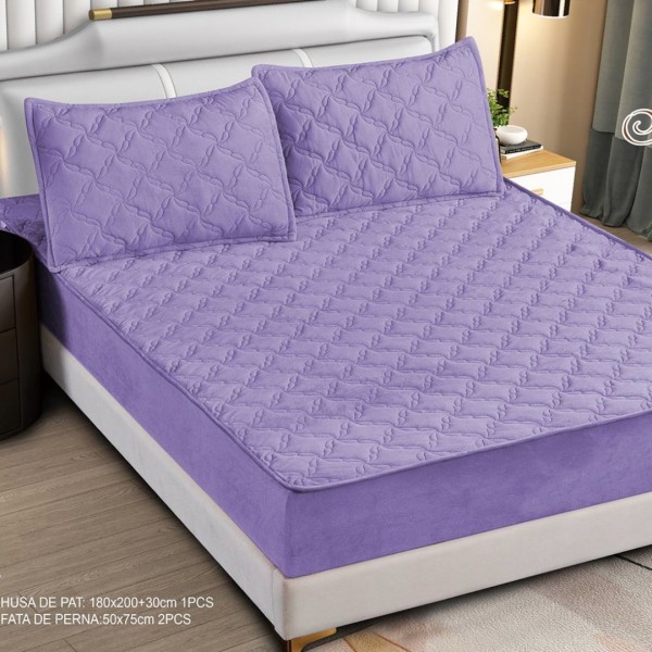 Husă Matlasată Tip Topper din Catifea 180x200cm, cu 2 Fețe de Pernă 50x70cm - Somn Odihnitor și Susținere pentru Spate, Mov, Johny Home Pucioasa, cod produs: SPR-180HM05