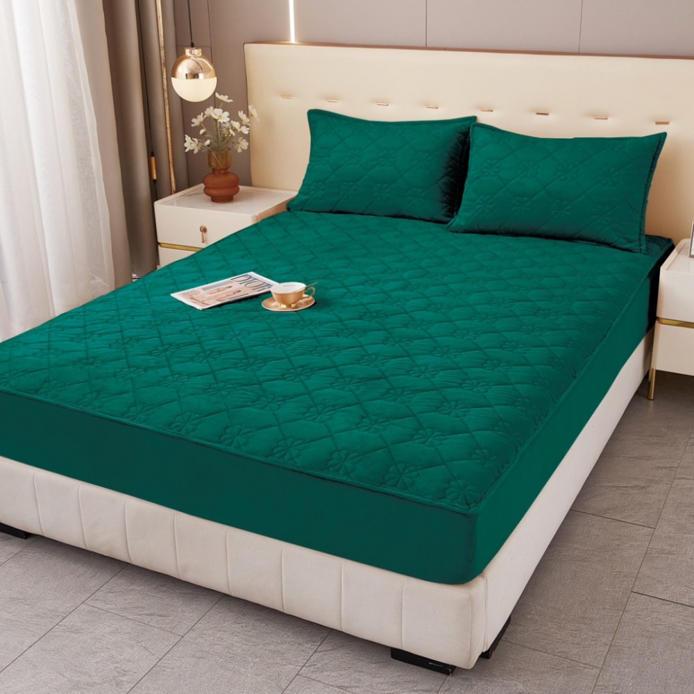 Husă Matlasată Tip Topper din Catifea 180x200cm, cu 2 Fețe de Pernă 50x70cm - Somn Odihnitor și Susținere pentru Spate, Verde Smarald, Veluxio Home, cod produs: ELN-TP180-01
