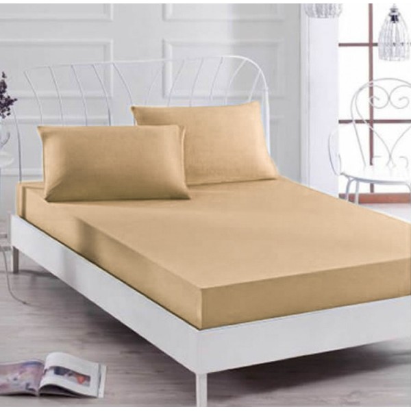 Husa saltea 160x200cm, 2 fete de perne 50x70cm, cu elastic, Bumbac Jersey, Bej, Alti producatori, cod produs: HPJ16