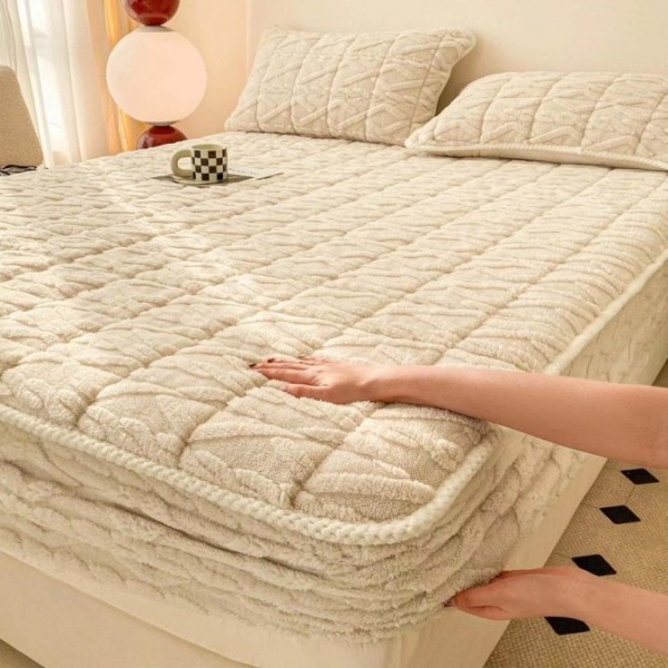 Husa Topper Cocolino Matlasata 140x200cm cu Elastic și Două Fețe de Pernă 50x70cm, model Tricotat , cu bordura, crem, Alti producatori, cod produs: FYT700