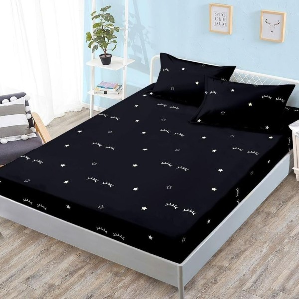 Cearșaf cu Elastic, Bumbac Satinat, 180x200 cm + 2 Fețe de Pernă 50x70 cm, Negru, Gene, Casa Minunata, cod produs: SPR-J-51
