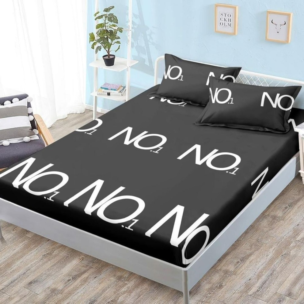 Cearșaf cu Elastic, Bumbac Satinat, 180x200 cm + 2 Fețe de Pernă 50x70 cm, Negru, No.1, Casa Minunata, cod produs: SPR-J-35