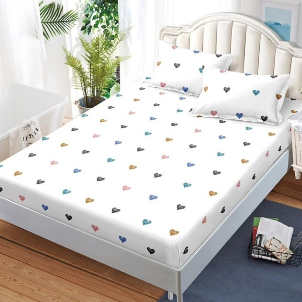 Cearșaf cu Elastic, Bumbac Satinat, 180x200 cm + 2 Fețe de Pernă 50x70 cm, Alb, Inimioare, Casa Minunata, cod produs: SPR-J-29