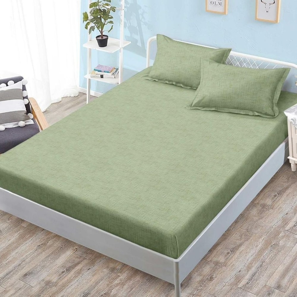 Cearșaf cu Elastic, Bumbac Satinat, 180x200 cm + 2 Fețe de Pernă 50x70 cm, Verde, Casa Minunata, cod produs: SPR-J-31