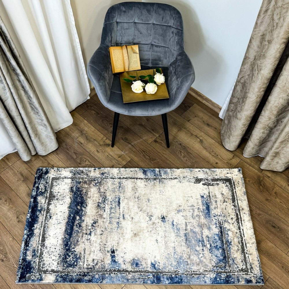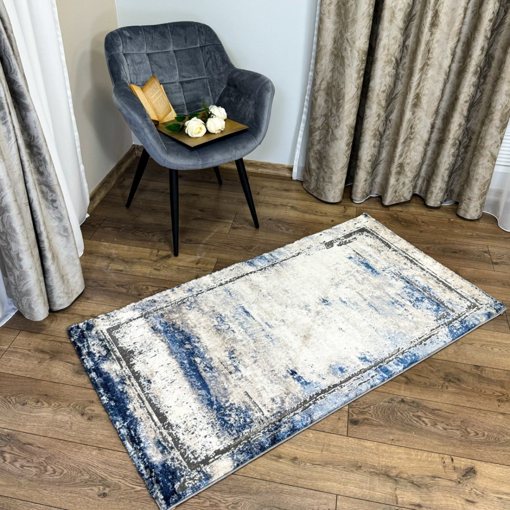 Covor Modern, Elegant, 80x300cm, gros si pufos, SHINNY V2, Albastru/Gri/Alb, Alti producatori, cod produs: CRC8c