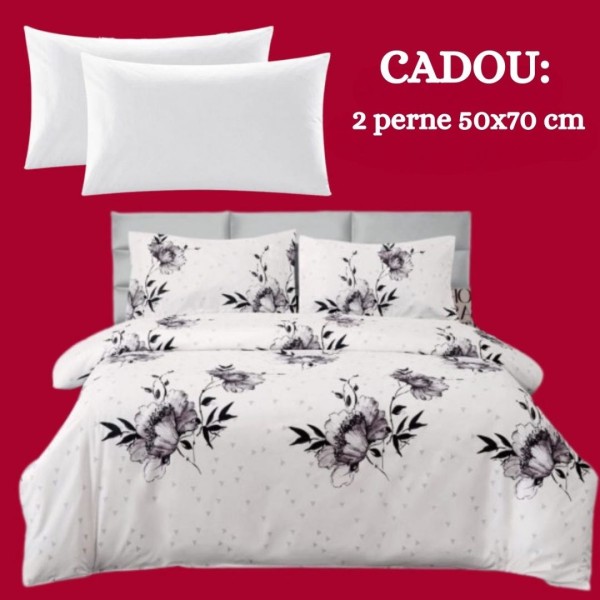 • Perne cadou incluse: Setul vine însoțit de două perne cadou de 50x70 cm, cu umplutură din vatelină siliconică, ideale pentru un somn odihnitor și un suport delicat al capului și gâtului.