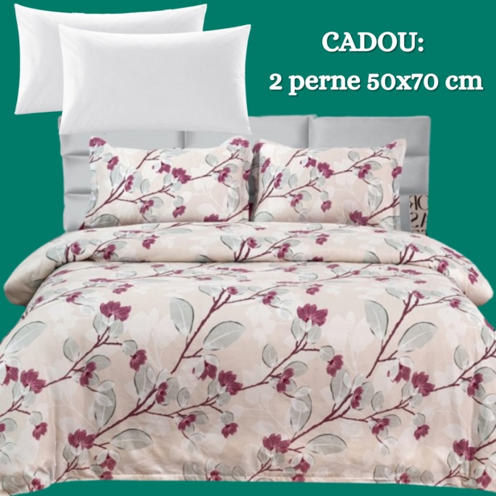 Transformă-ți dormitorul într-un spațiu de relaxare și rafinament cu această lenjerie de pat din bumbac satinat superior, completată de 2 perne cadou 50x70 cm, umplute cu vatelină siliconică. O alegere excelentă pentru cei care își doresc un echilibru între confort, estetică elegantă și funcționalitate.