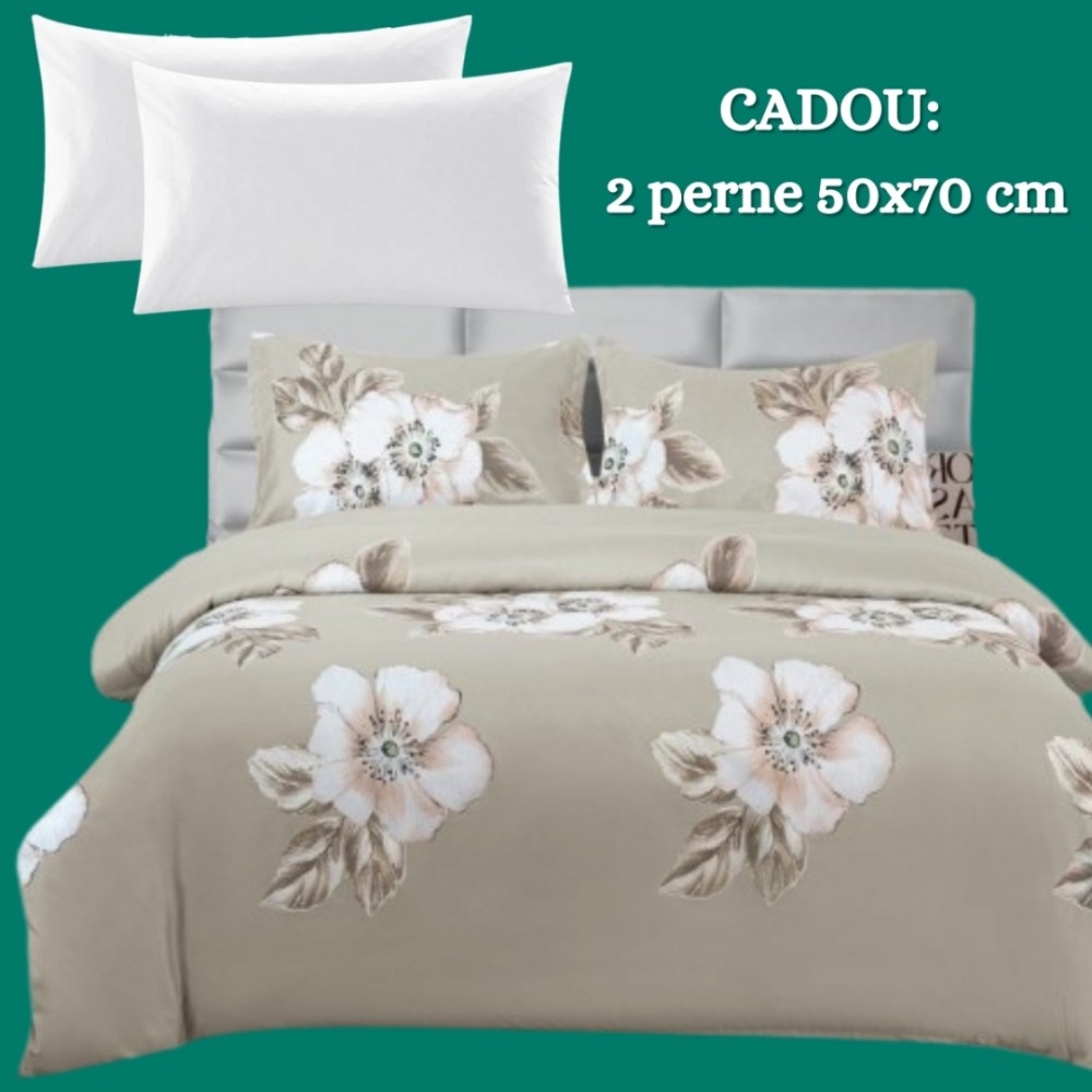 • Perne cadou incluse: Setul vine însoțit de două perne cadou de 50x70 cm, cu umplutură din vatelină siliconică, ideale pentru un somn odihnitor și un suport delicat al capului și gâtului.
