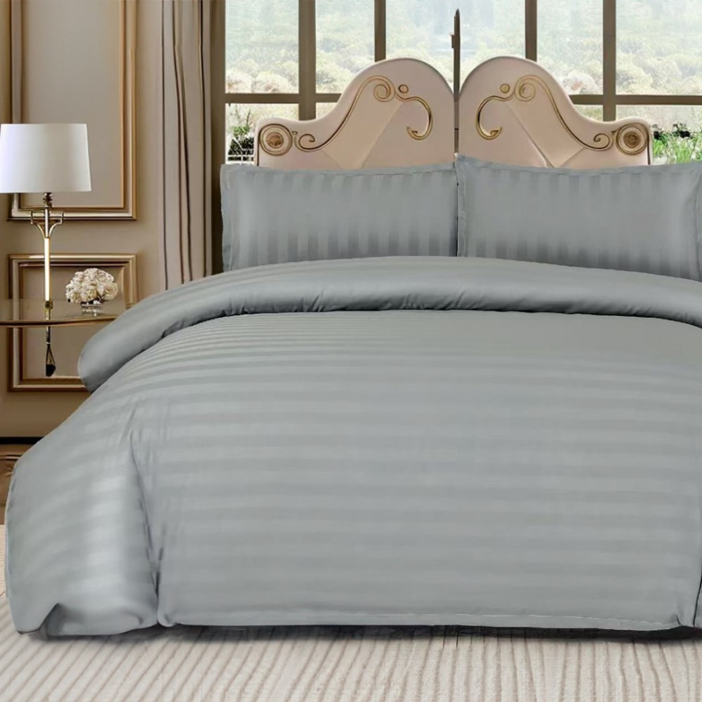 Lenjerie HoReCa, pat dublu, Damasc Finetat Deluxe cu Elastic, 4 piese, Gri, Primavara Casa, cod produs: EST-KD-04